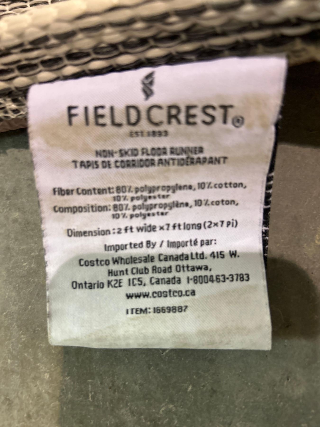 Field Crest non-skid floor runner carpet 2ft wide x 7ft long