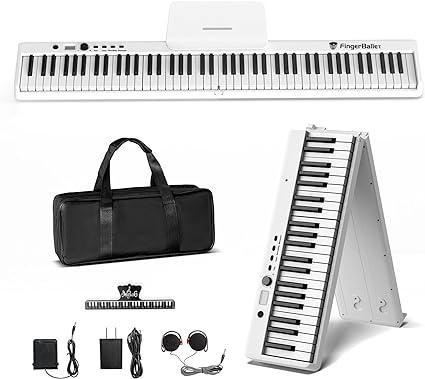 FingerBallet Portable Piano Keyboard, Semi-Weighted Folding Digital Piano 88 Key, Full Size, Wood Grain, Electric Piano Keyboard w/MIDI Bluetooth, Suitable for Adult, Toddler, Kids