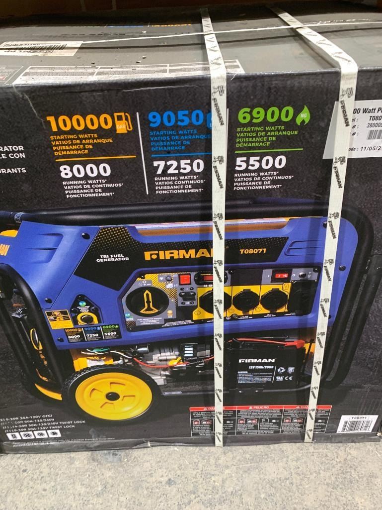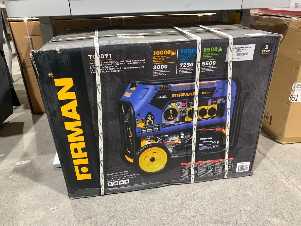 Firman T08071 8000 watt Electric start tri fuel portable generator.