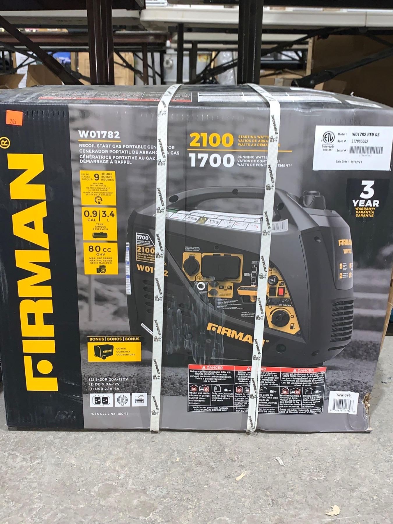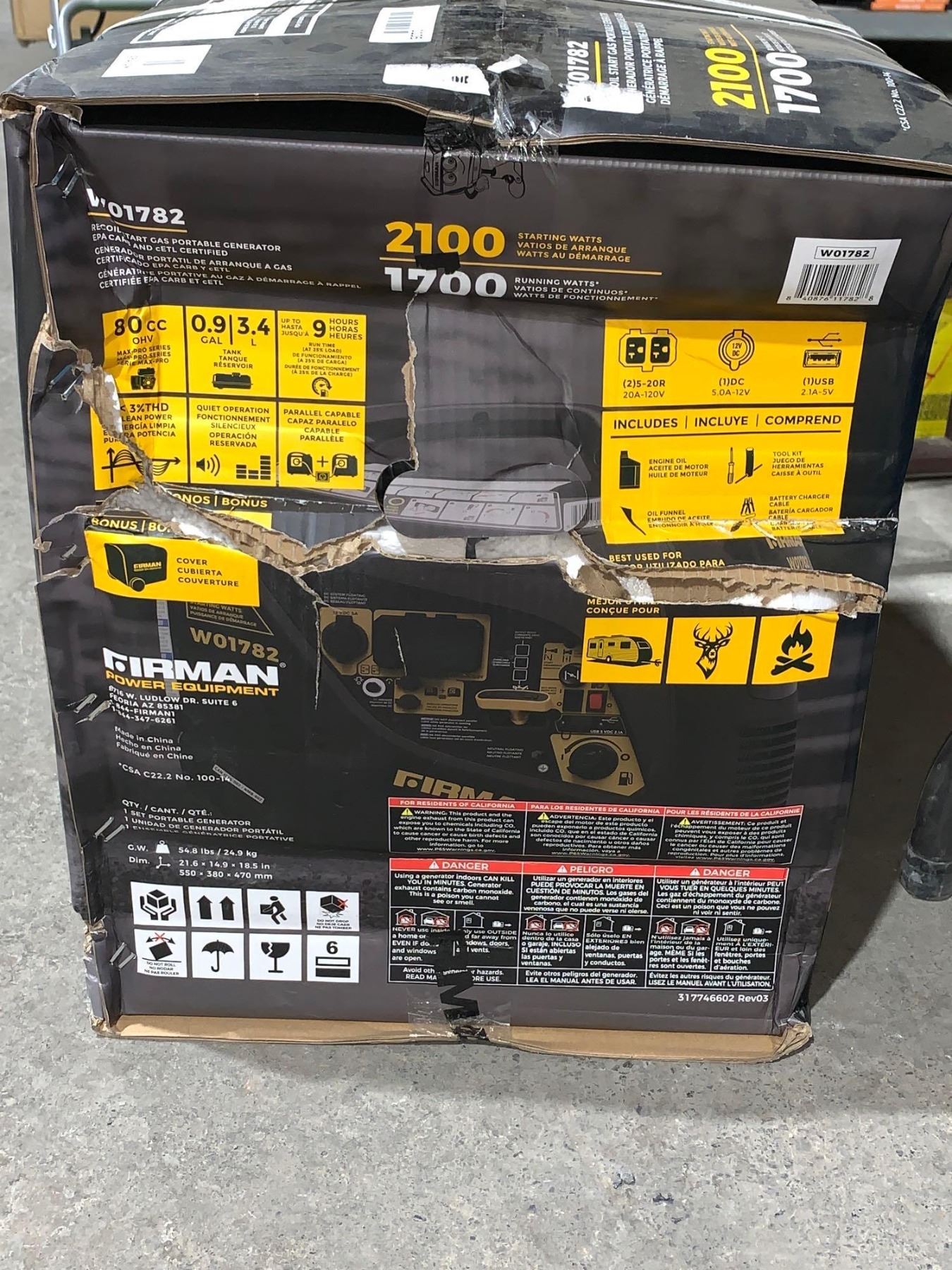 Firman W01782 Recoil Start Gas Portable Generator 2100Starting Watts and 1700 Running Watts w/ Bonus Cover