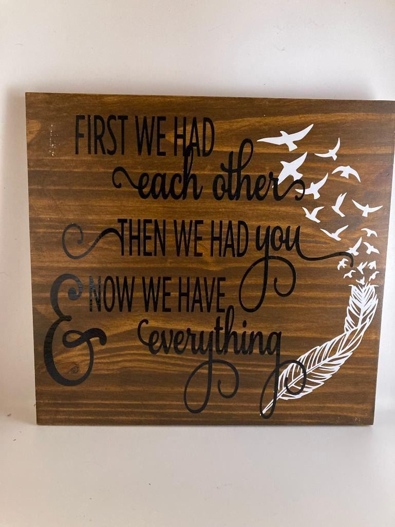 First we had each other, then we had you, now we have everything 12X12 Inches. Made of Pine. Hooks on Back