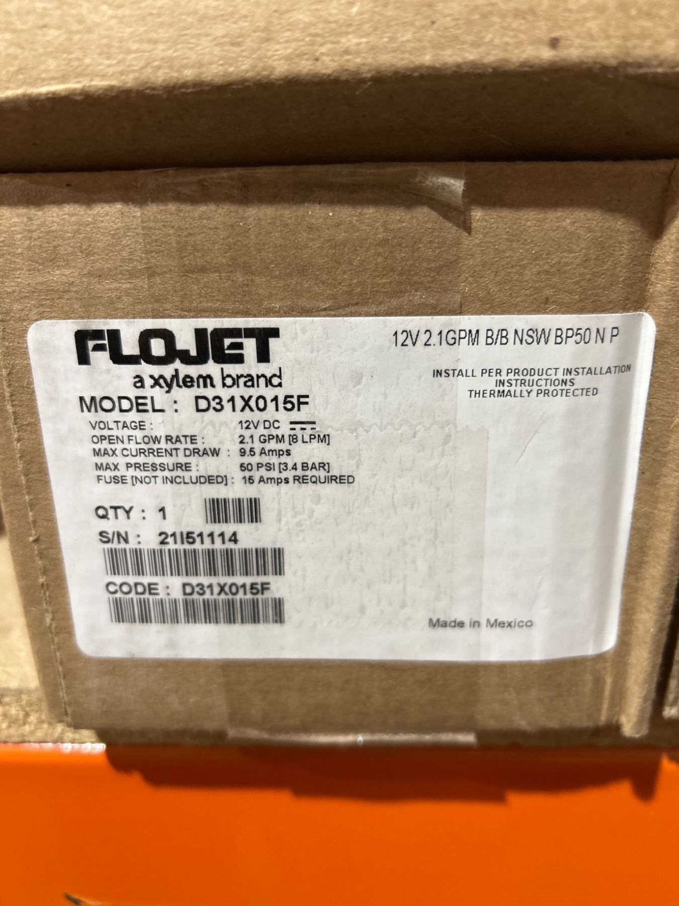 Flojet Duplex II Industrial Series Pump, Model D31X015F, 12V, 2.1 GPM