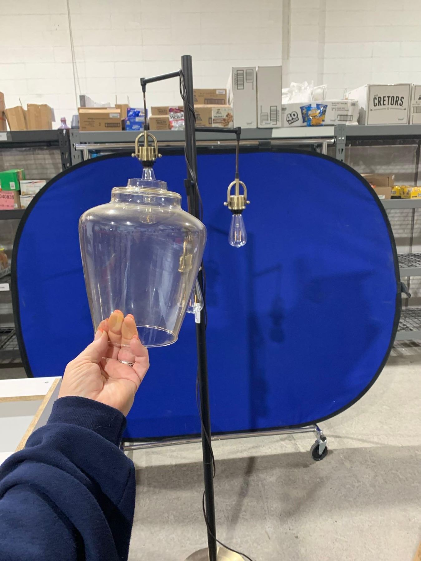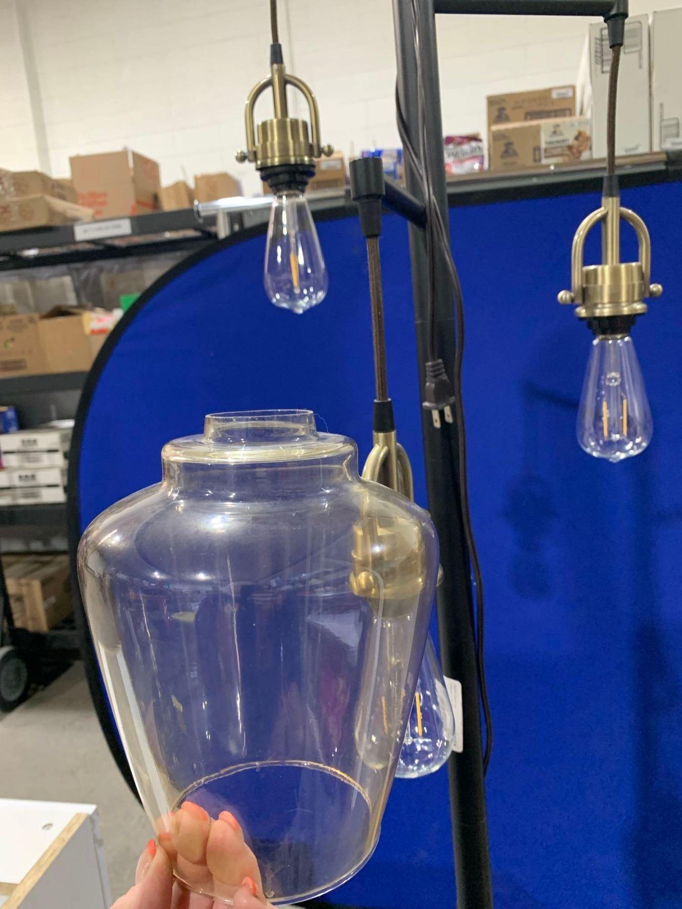 Floor Lamp Black & Gold 3 Globe Lights MISSING 1 Globe