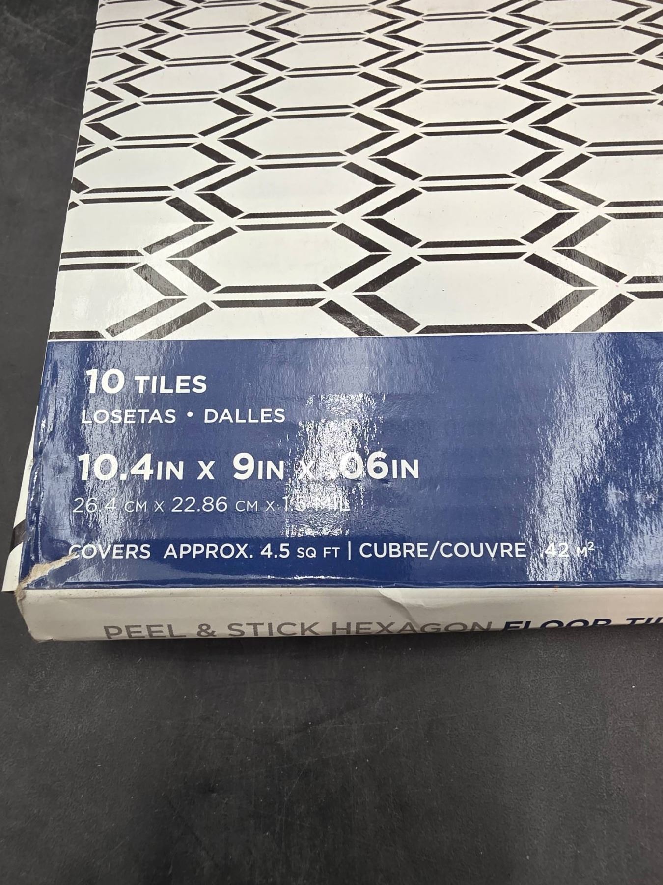 FloorPops Peel and Stick Hexagon Floor Tiles, 10.4 x 9 Inches, Black and White, 10 Pack