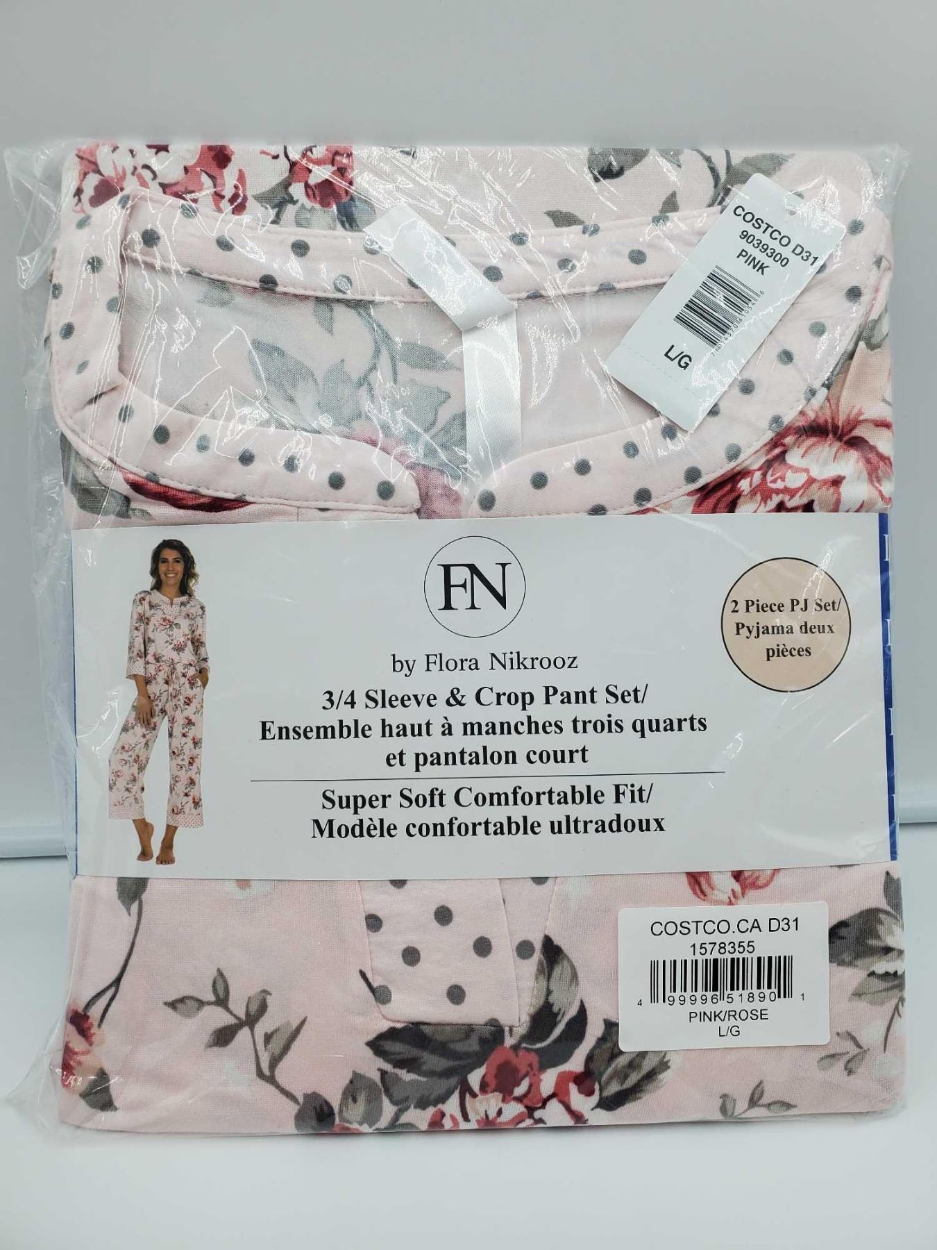 Flora Nikrooz 3/4 Sleeve & Crop Pant Set-Pink Rose (L)