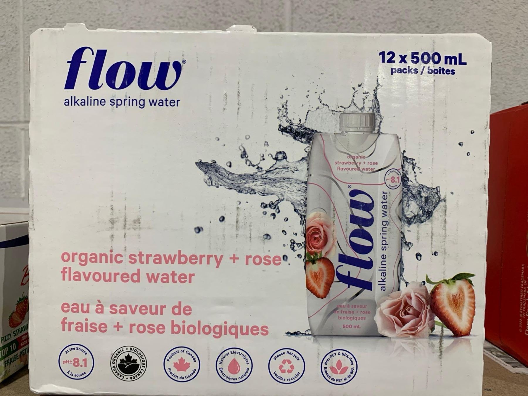 Flow Alkaline Spring Water Organic Strawberry + Rose Flavoured Water 12 x 500ml