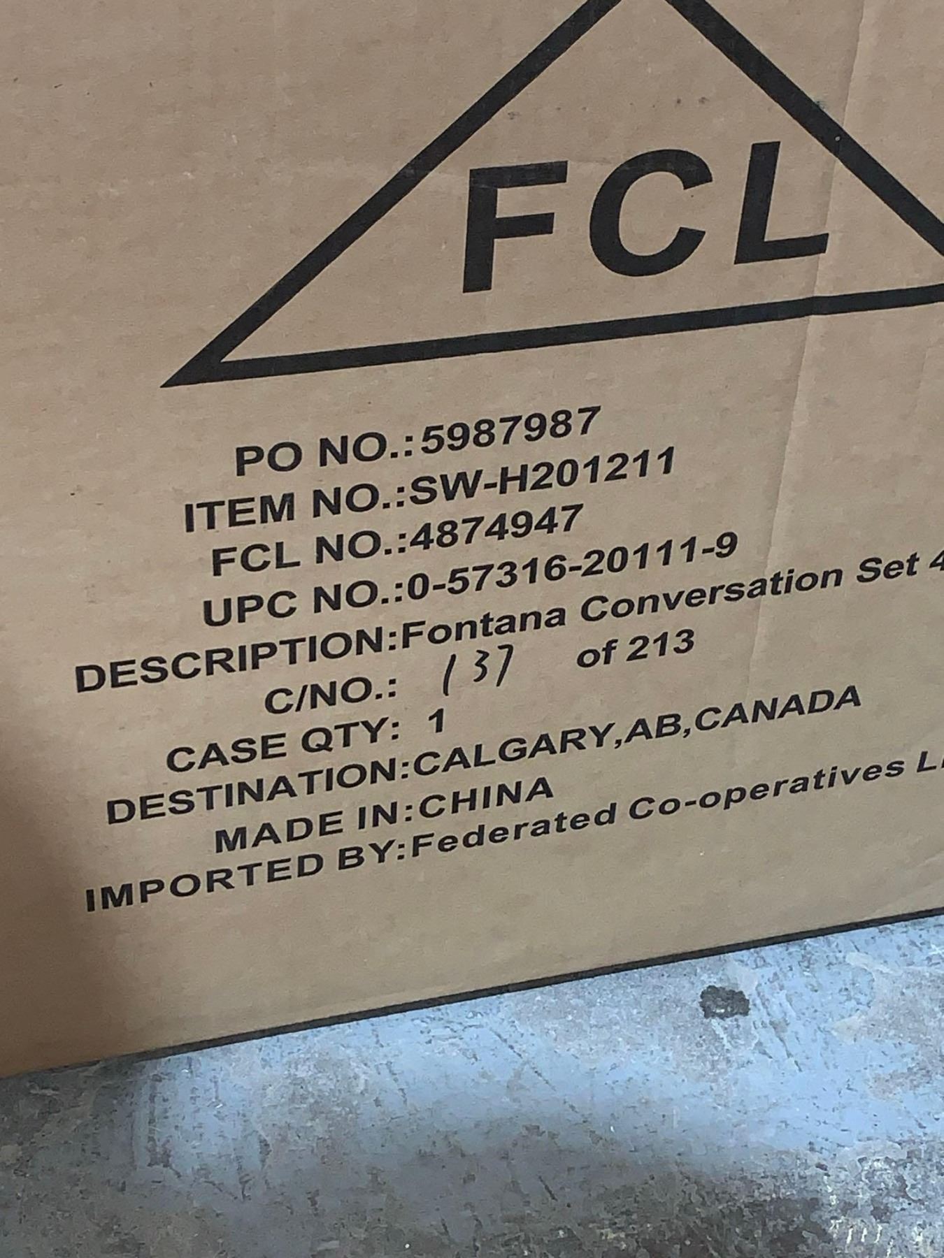 Fontana Conversational 4 Piece Set Photo is for Style Reference NOT exactly as Shown