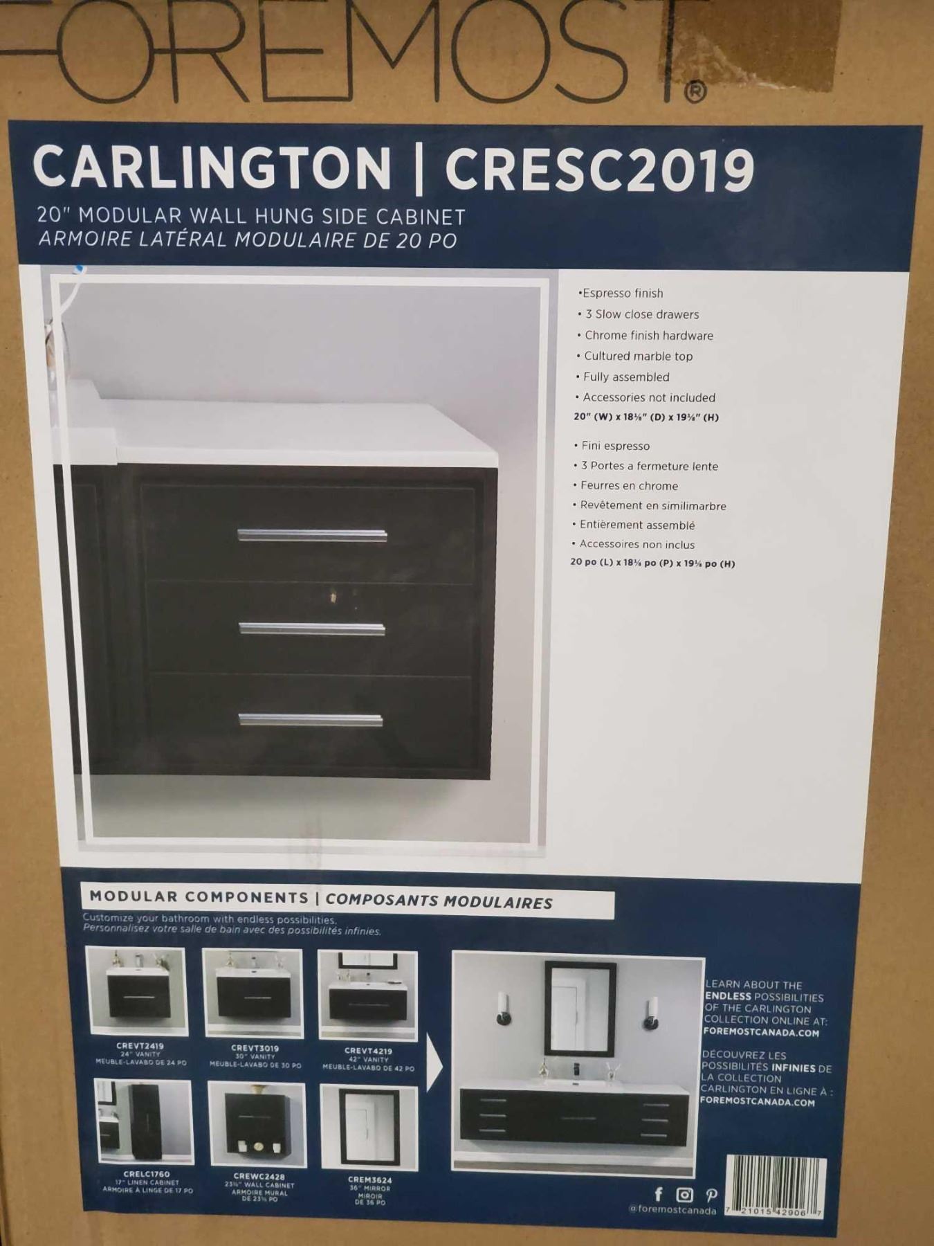 Foremost Carlington 20" Modular Wall Hung Side Cabinet