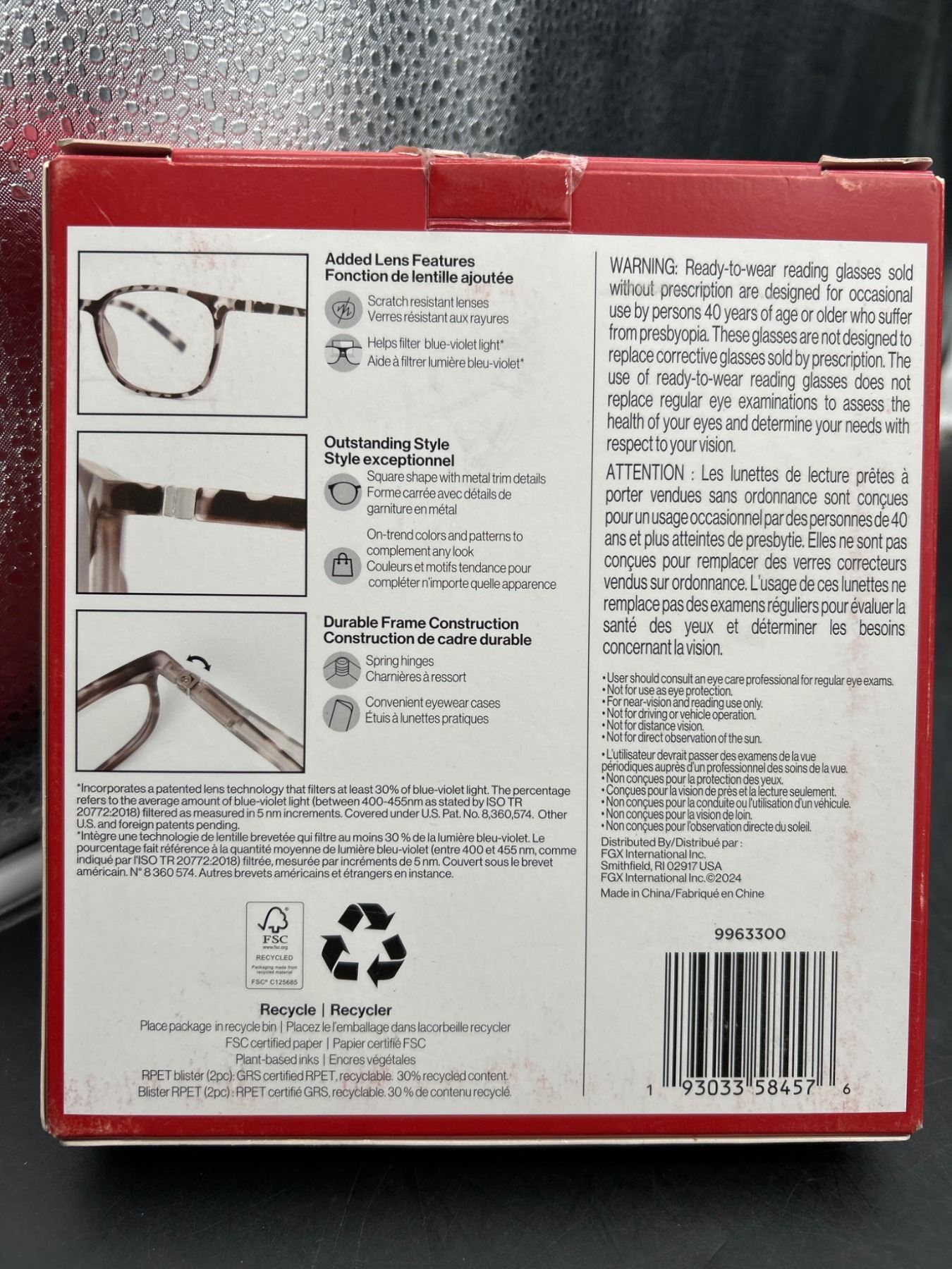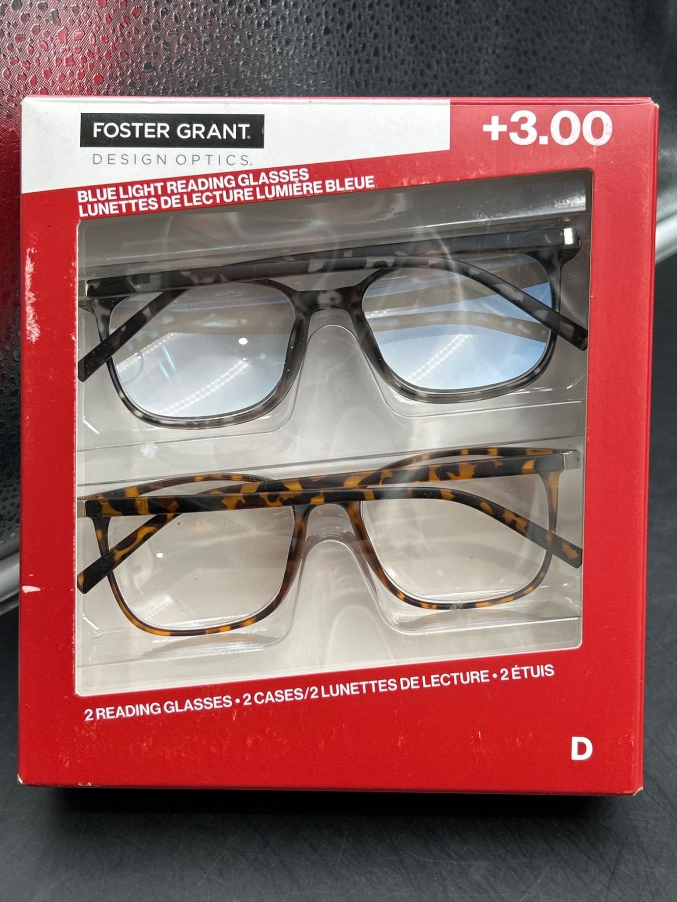 Foster Grant Blue Light Reading Glasses +3.00, 2-Pair Set with Hard Cases