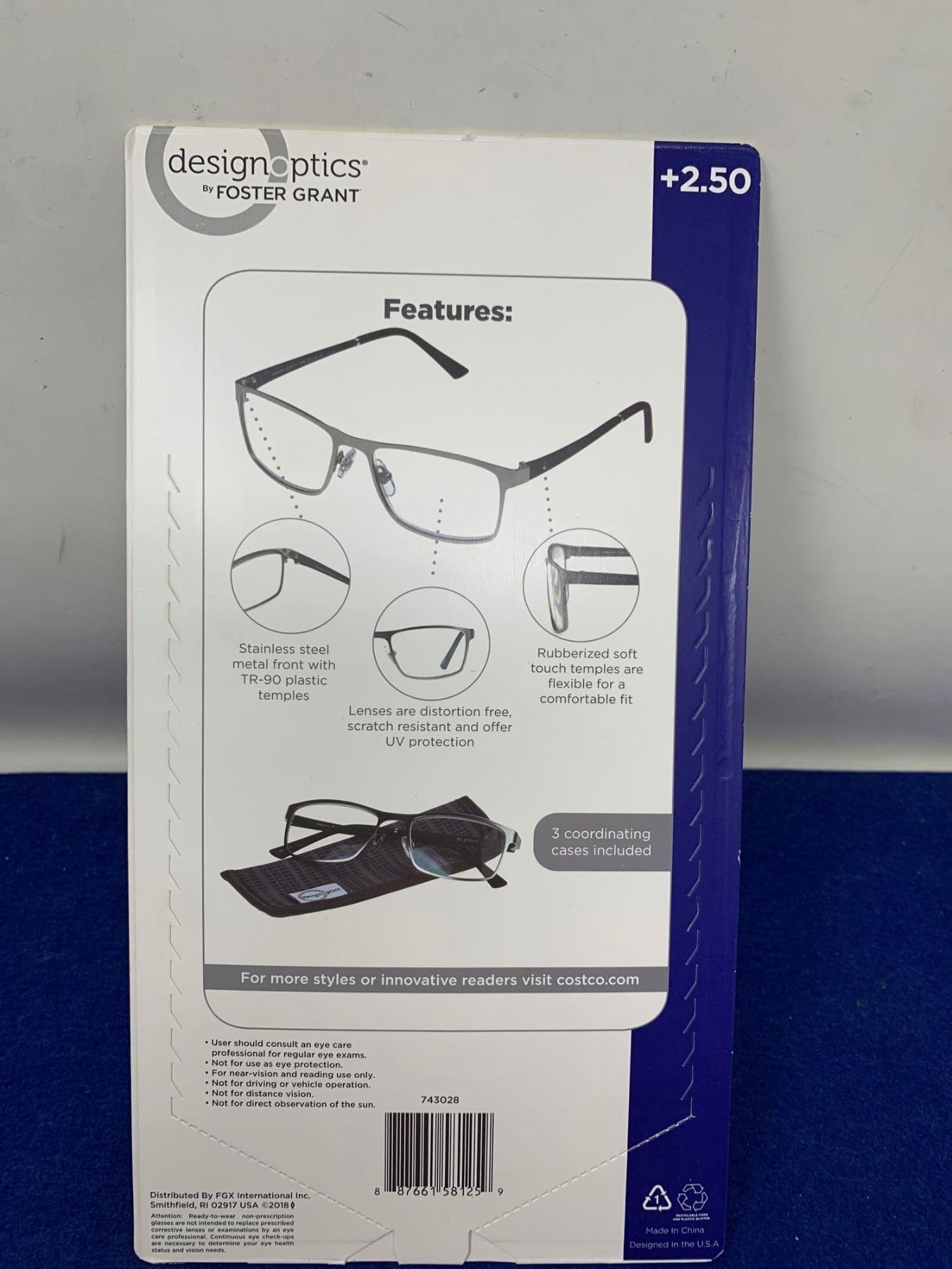 Foster Grant Full Frame Metal Readers Glasses (2.50)