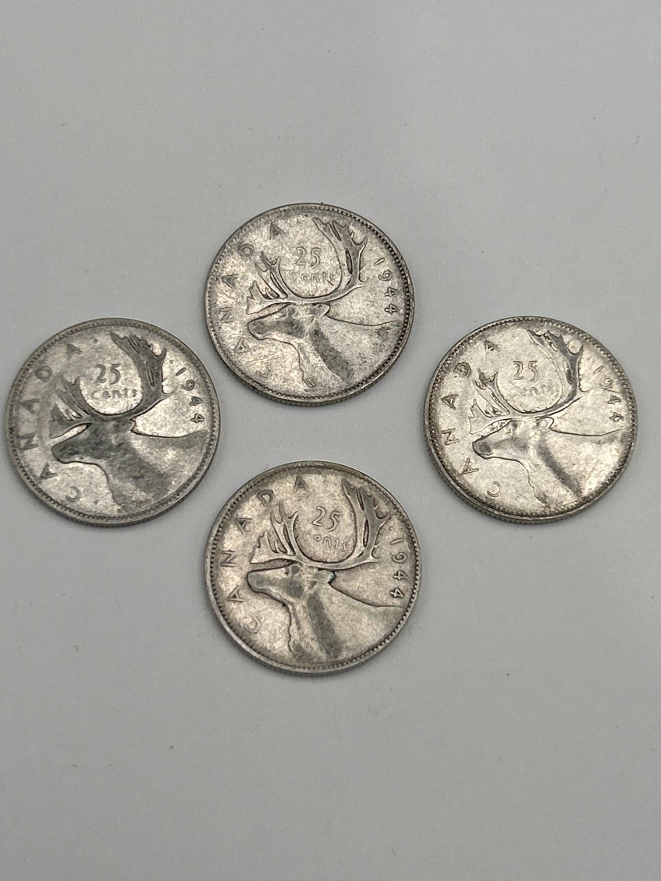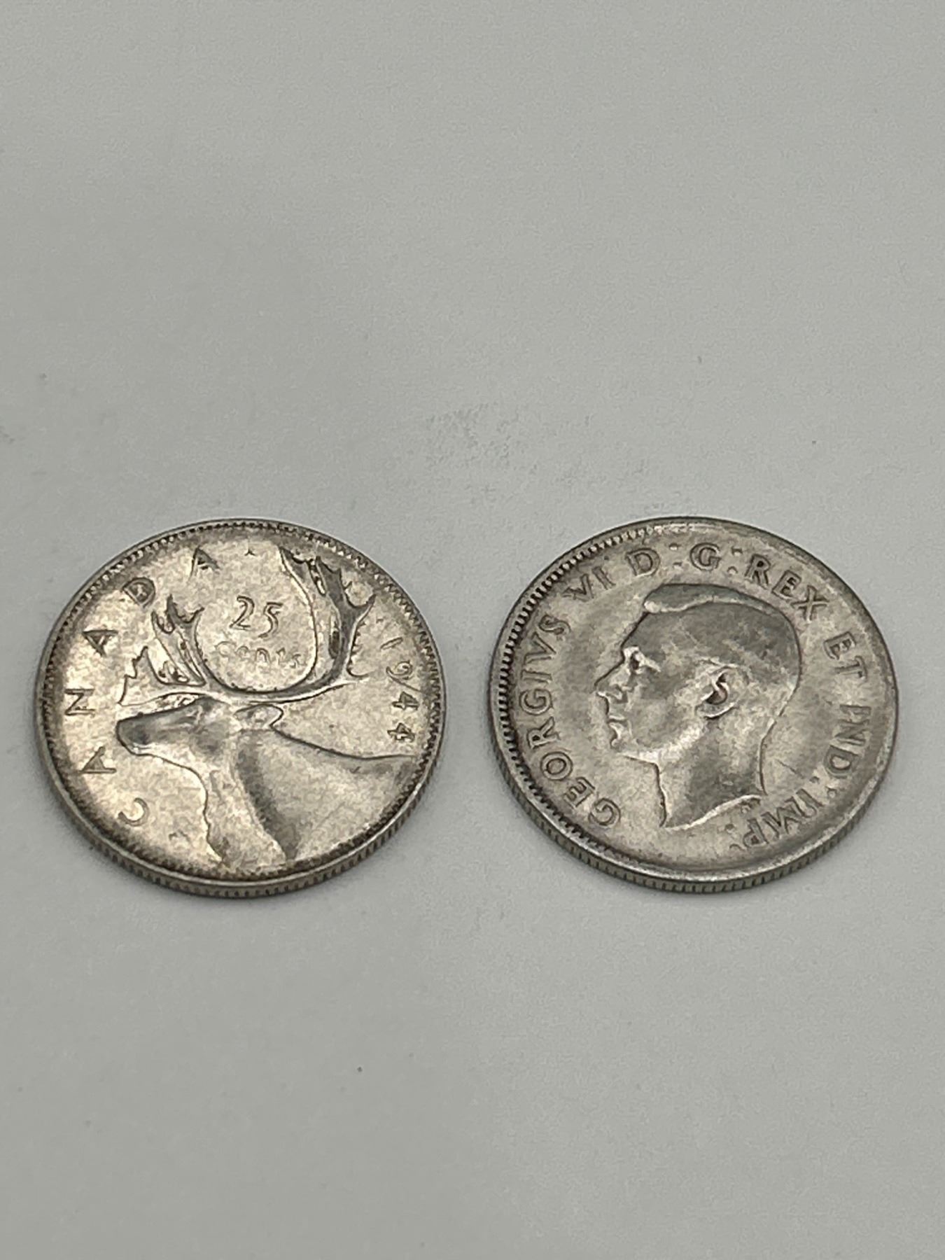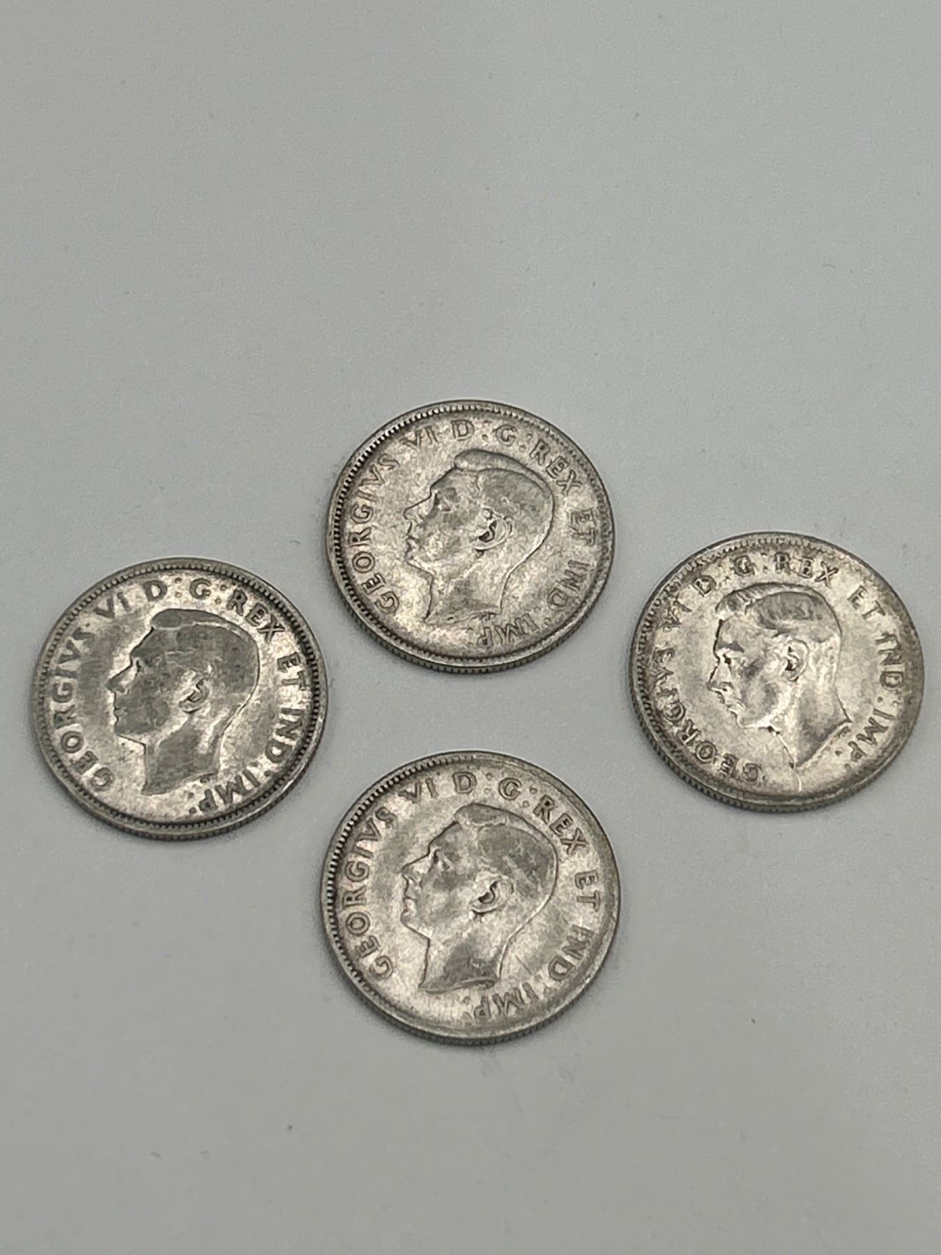 Four Canadian 25 Cent Silver Coins Featuring George VI