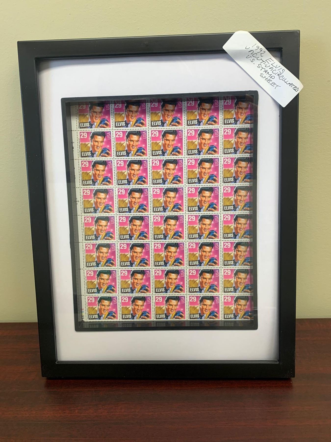 Framed 1992 Elvis Uncut U.S Stamp Sheet