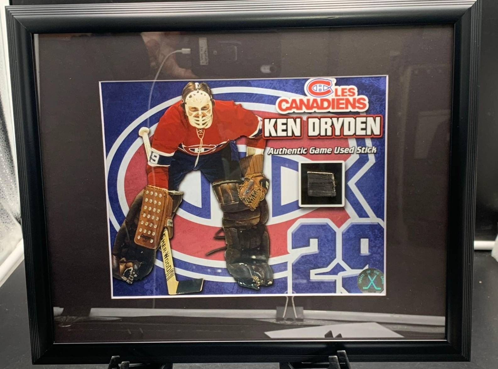 Framed Ken Dryden Autographed Memorabilia with Game-Used Stick Piece 12.5″ x 15″