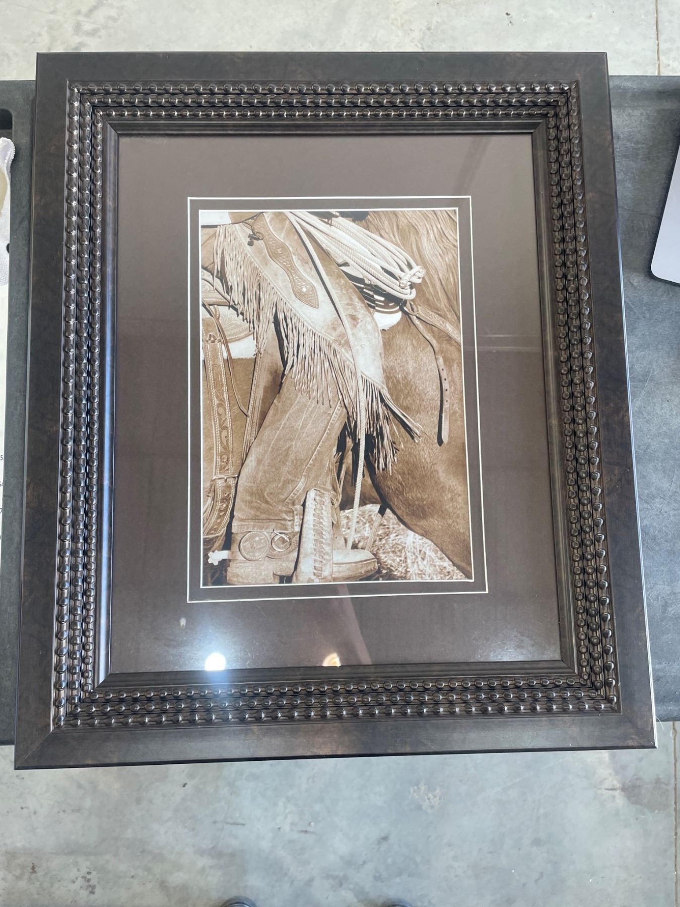 Framed Western-Themed Artwork with Detailed Matting and Embellished Frame 25 x 21 Inches