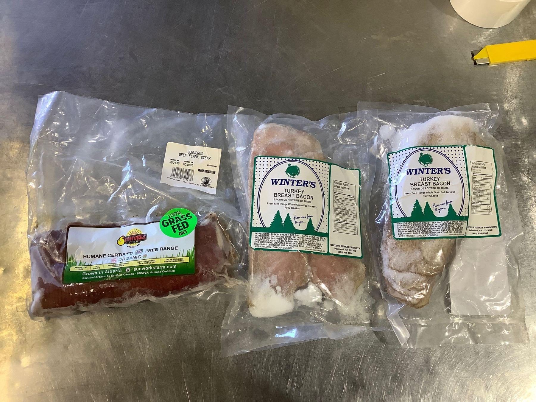 Frozen Winters Turkey Breast Bacon and SunWorks Beef Flank Steak Lot of 3