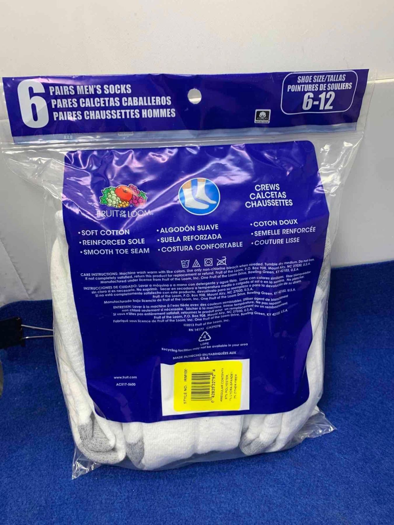 Fruit of the Loom Crew (6-12) 6pairs Socks