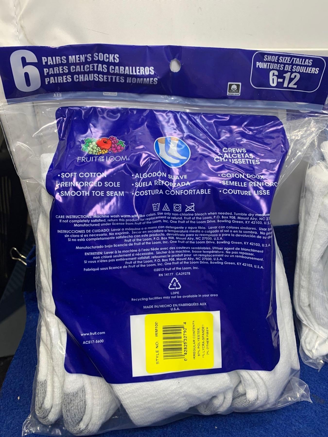 Fruit of the Loom Crew Socks (2 x 6) Size 6-12