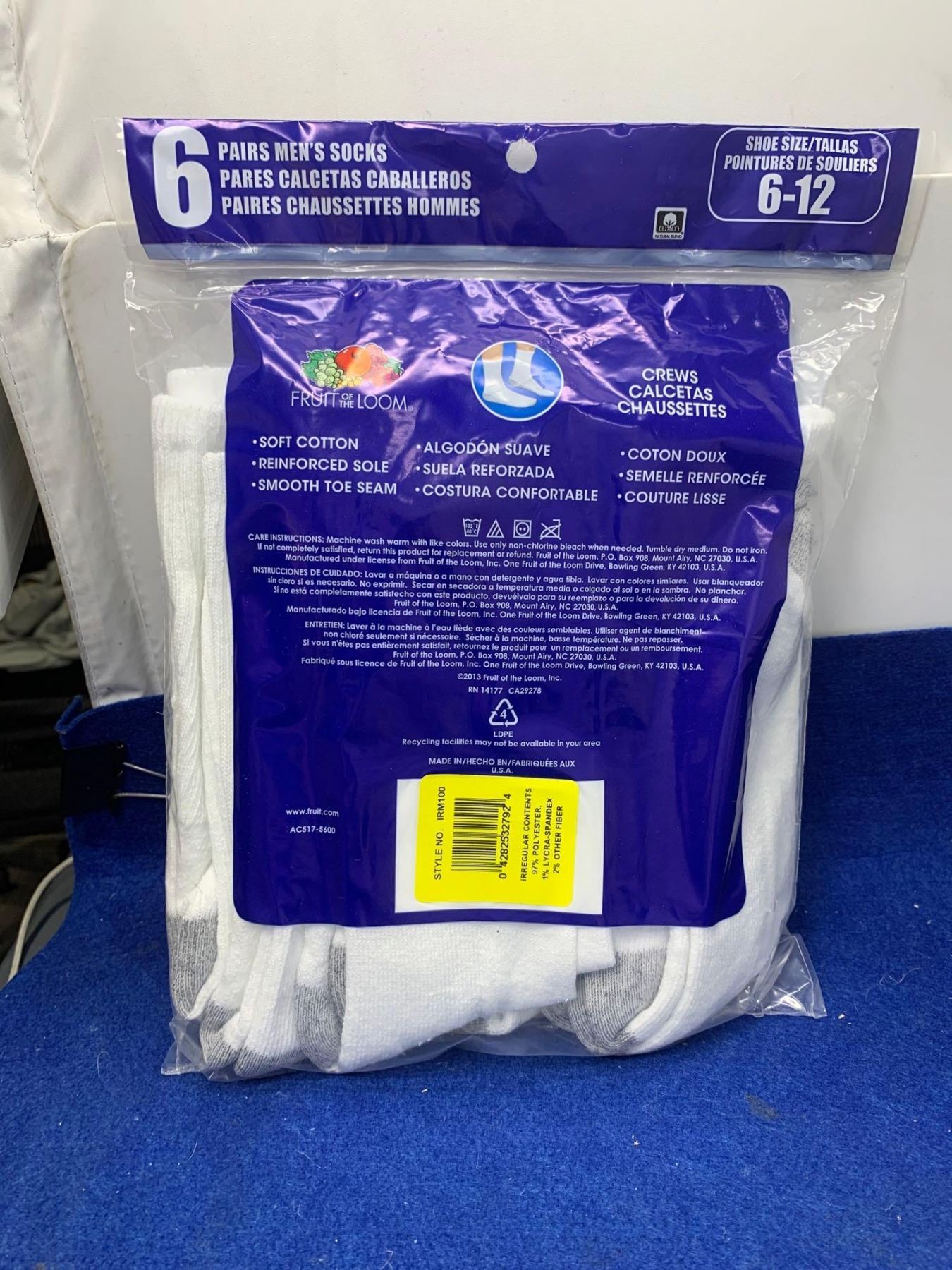 Fruit of the Loom Crew Socks (size 6-12)
