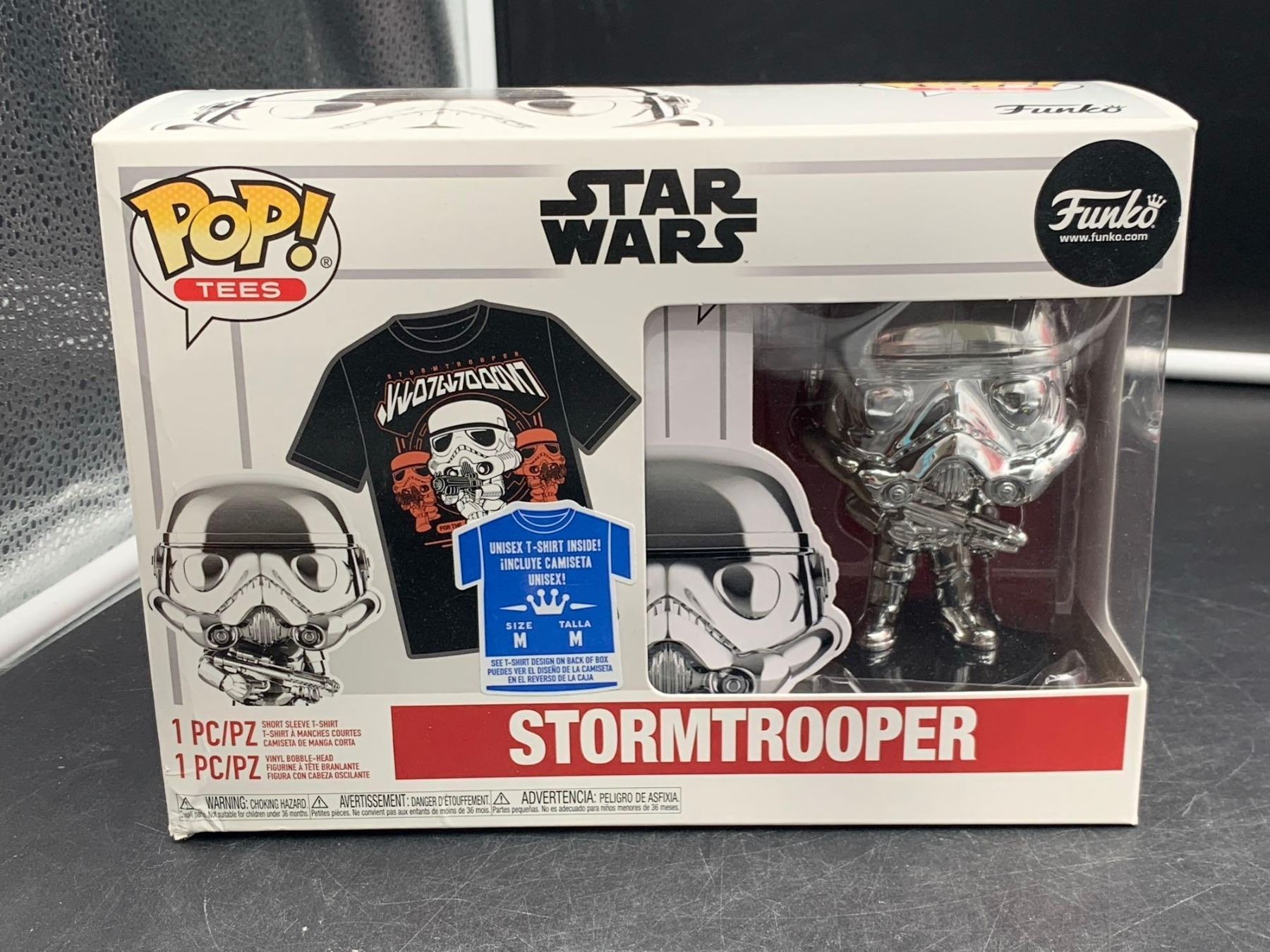 Funko POP! Star Wars #296 Silver Chrome Stormtrooper with Medium  T-Shirt NEW