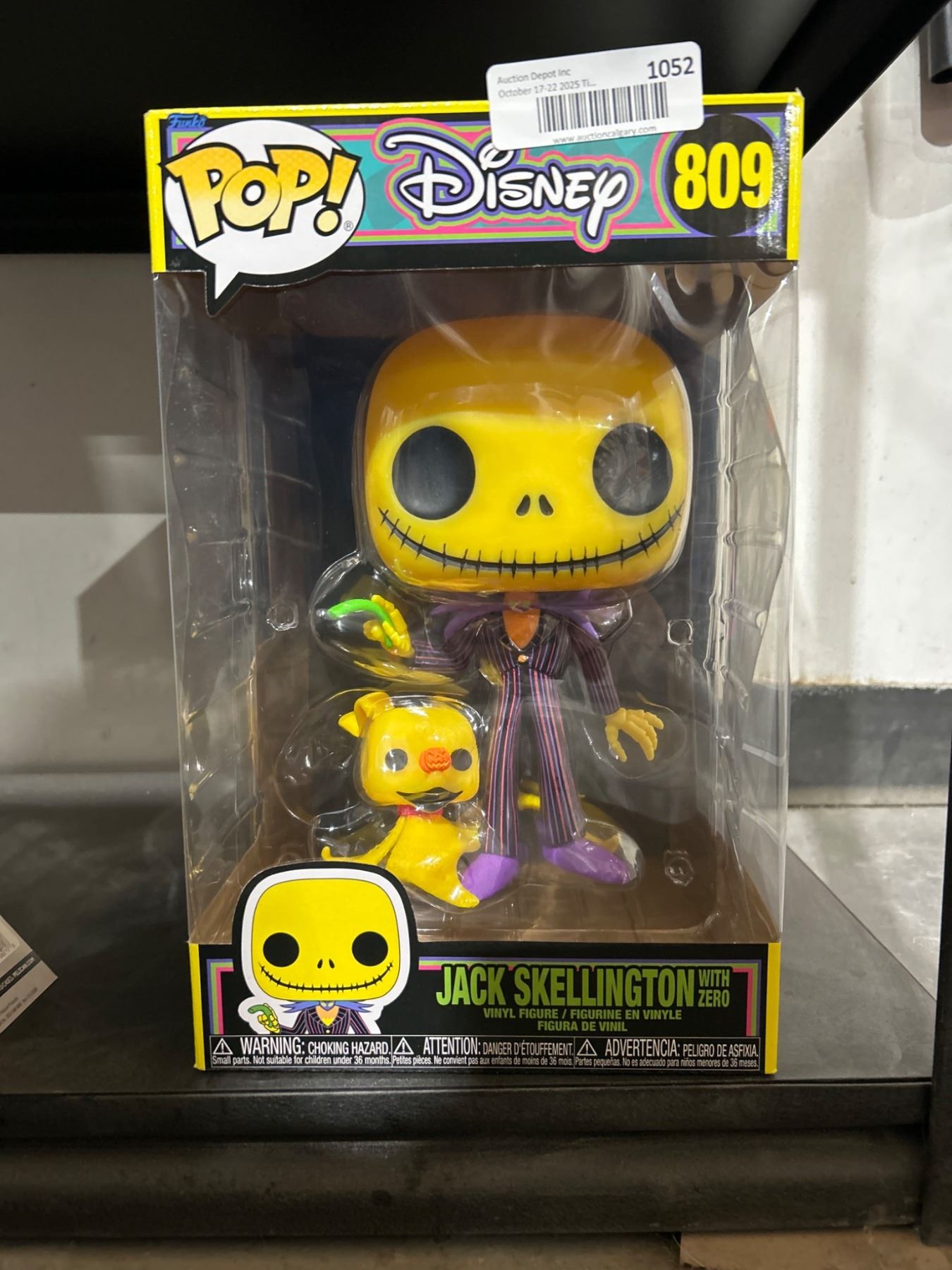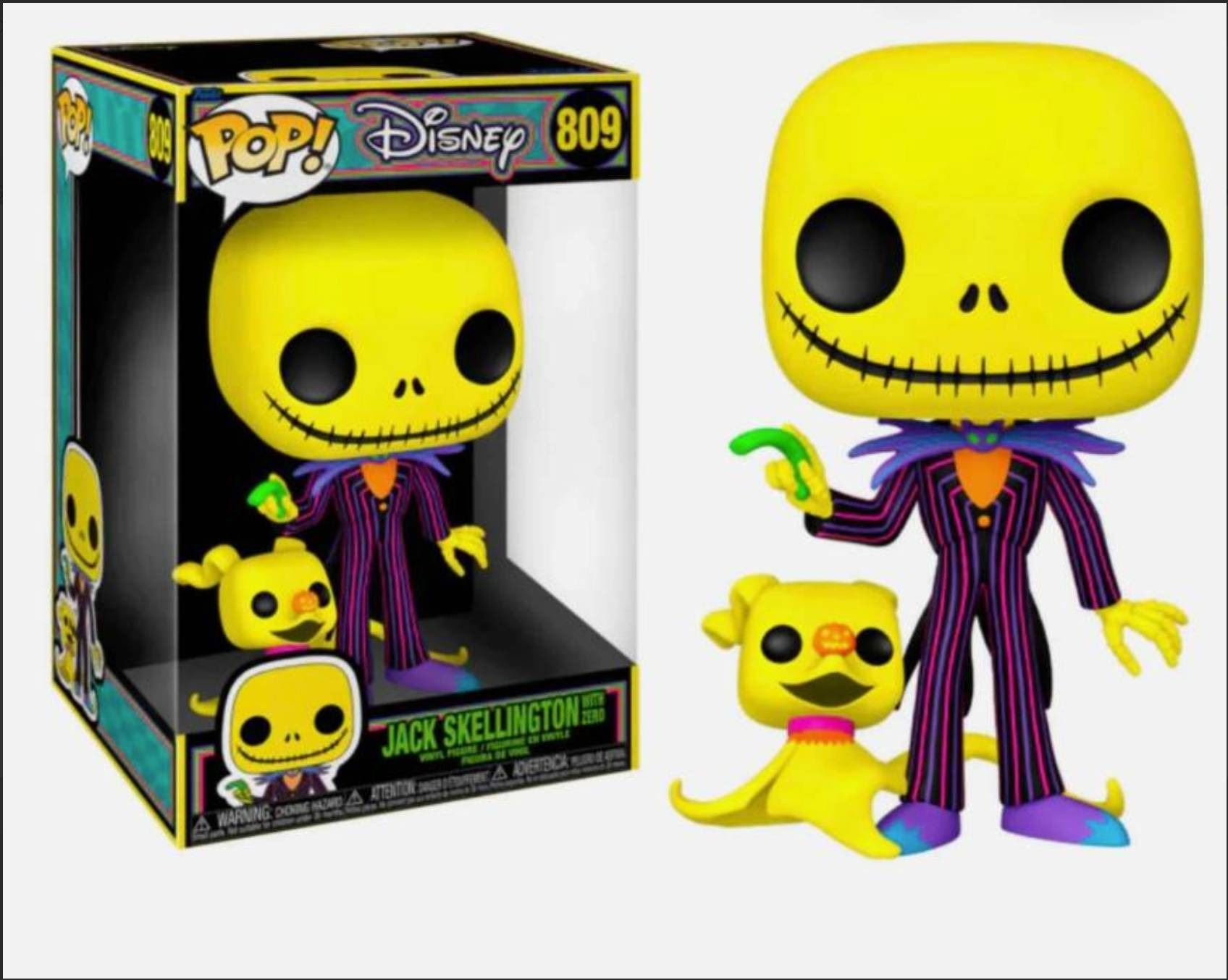 This lot includes Funko Pop! Disney Jack Skellington with Zero, model number 809. The collectible features Jack Skellington holding Zero and measures approximately 3.75 inches tall. Released as part of the Funko Pop! Disney collection.