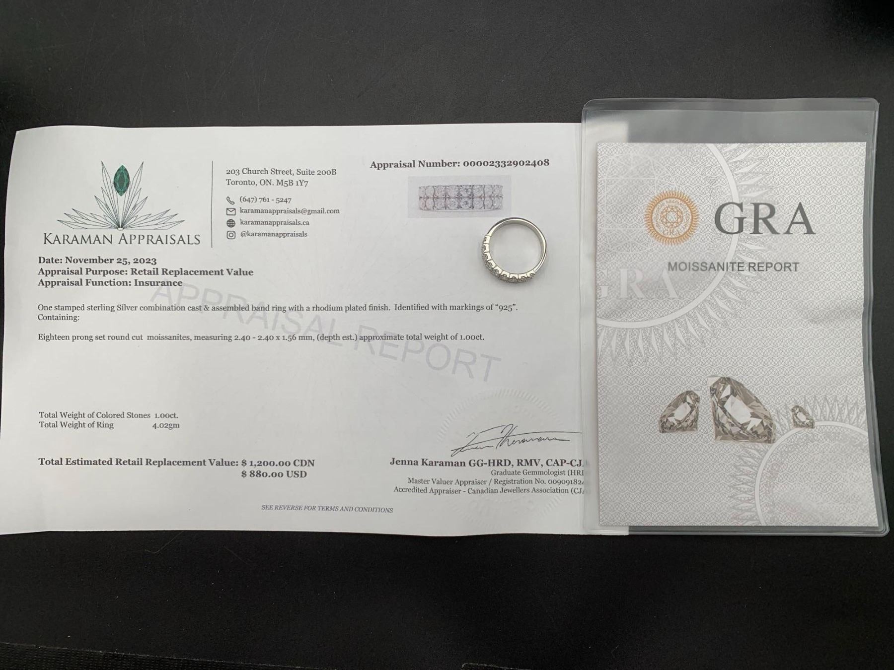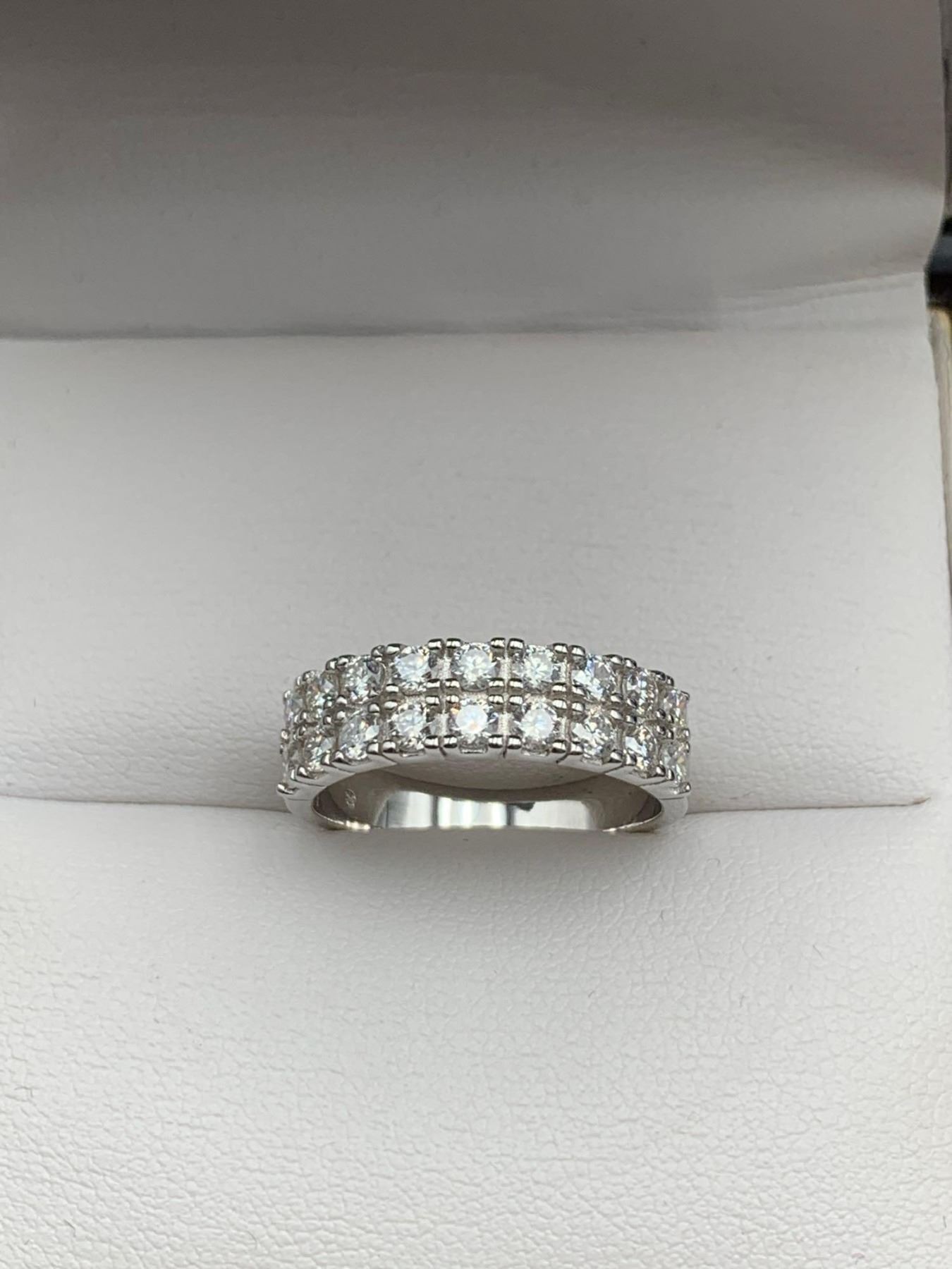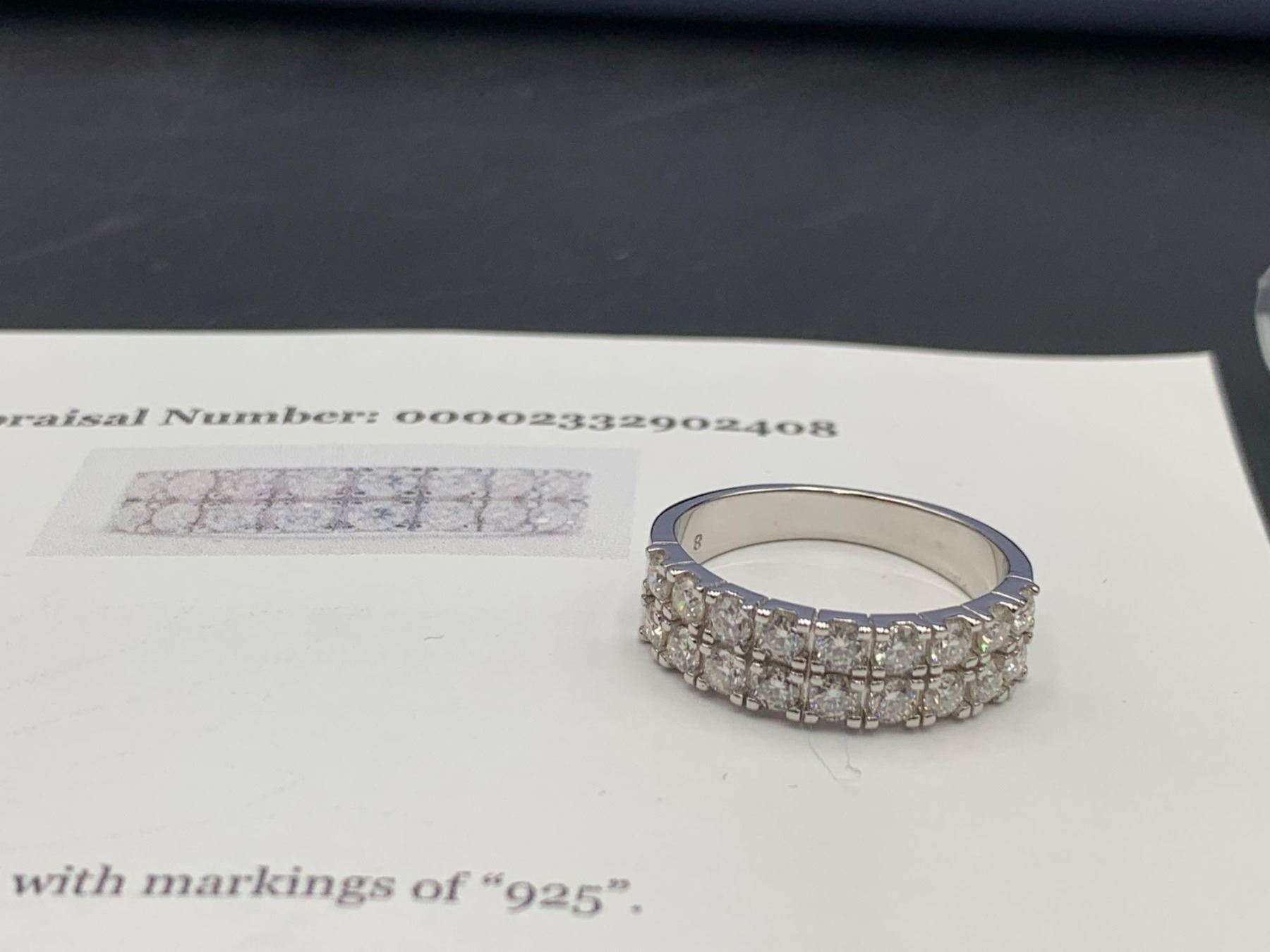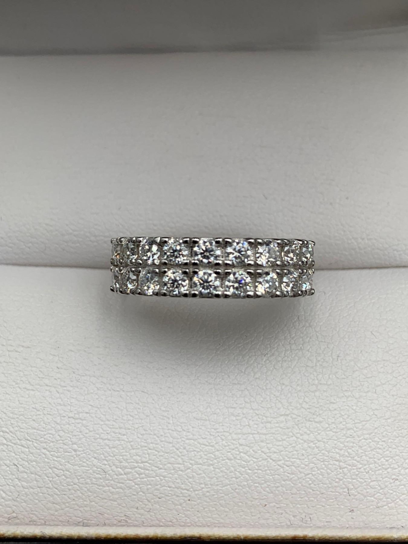 GRA CERTIFIED MOISSANITE VVS SET IN STERLING SILVER D WEIGHING APPROX. 1.00 CT TW THE 18 STONES ARE SET IN 2 ROWS SEY IN STERLING SILVER RETAIL REPLACEMENT VALUE $1,200.00