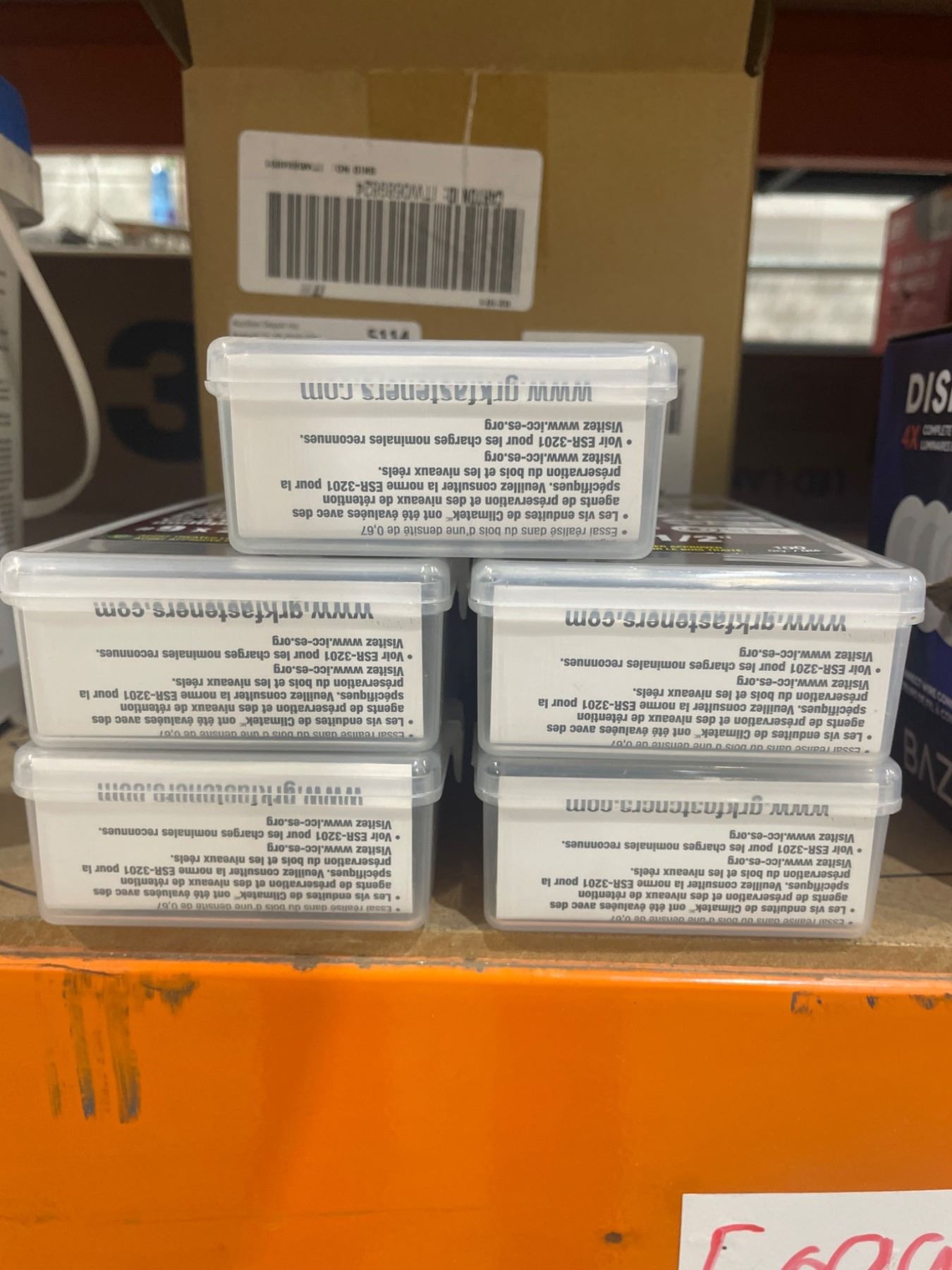 This lot contains GRK R4 Multi-Purpose Screws, model number 02101. Each pack includes 100 screws measuring #9 x 2-1/2 inches. These screws feature a self-countersinking design for efficient installation and are suited for a variety of materials, including wood, plastic, and composite. Packaged in handy units with clear specifications printed on the labels for easy identification.