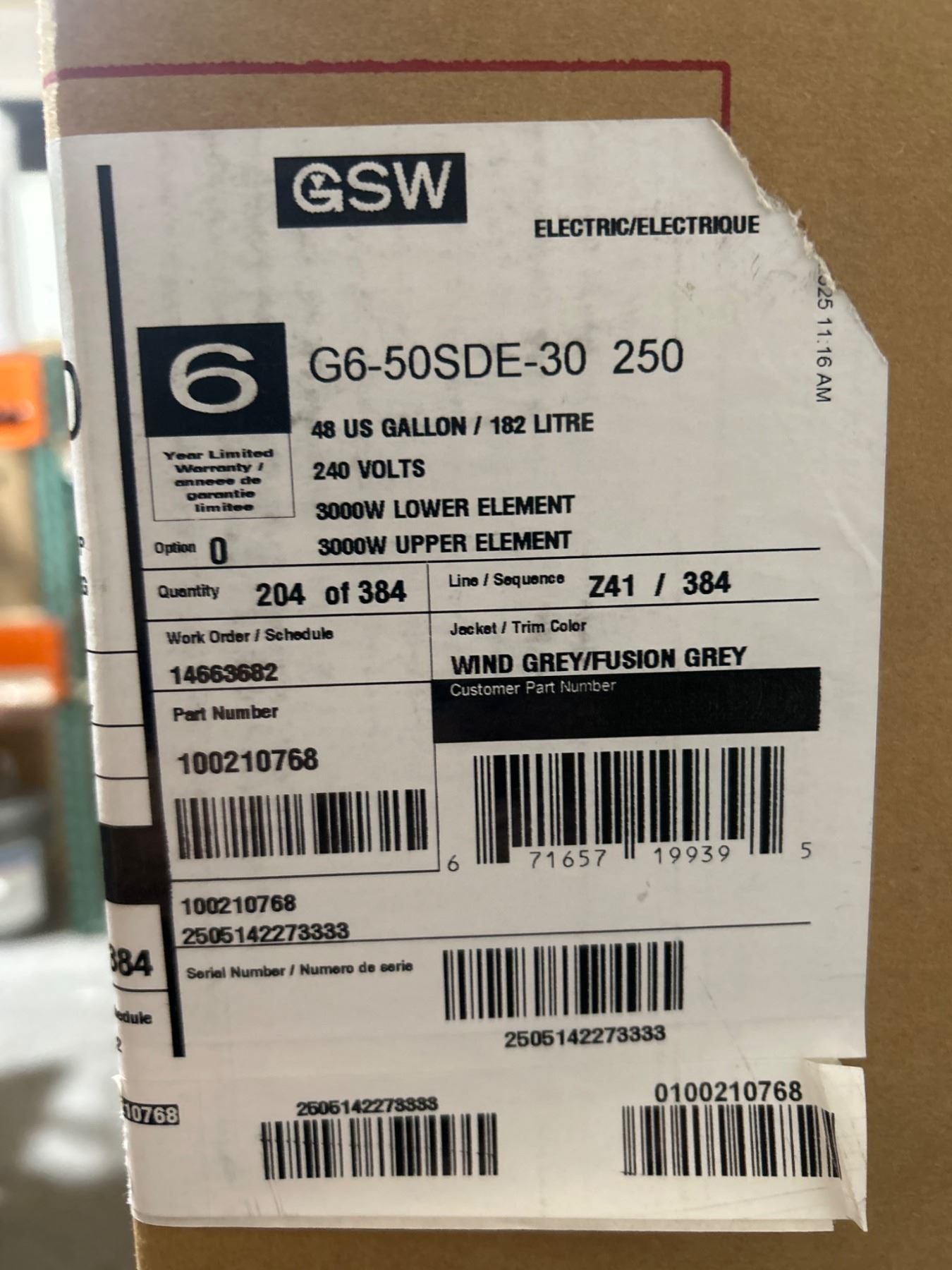 GSW G6-50SDE-30 250 Water Heater, 48 Gal, 240V, 3000W