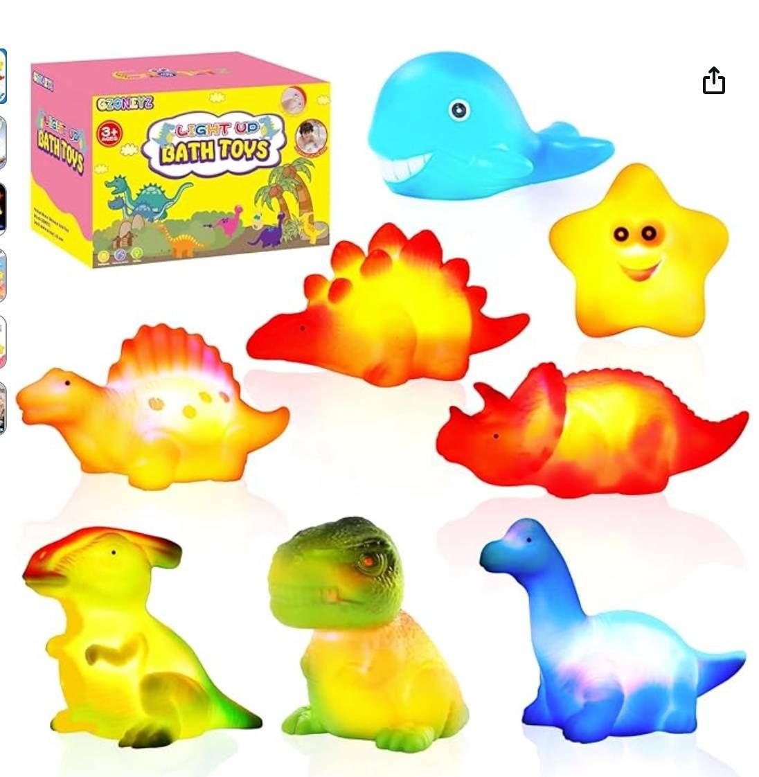 GZoneyz Light Up Bath Toys – Includes 8 Dinosaur-Themed Floating Toys