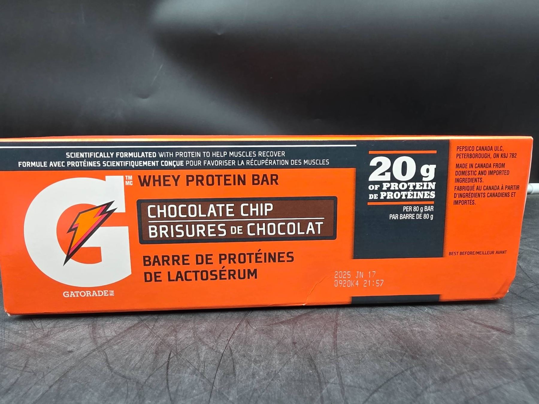 Gatorade Whey Protein Bars Chocolate Chip Flavor, 12 x 80 g Bars