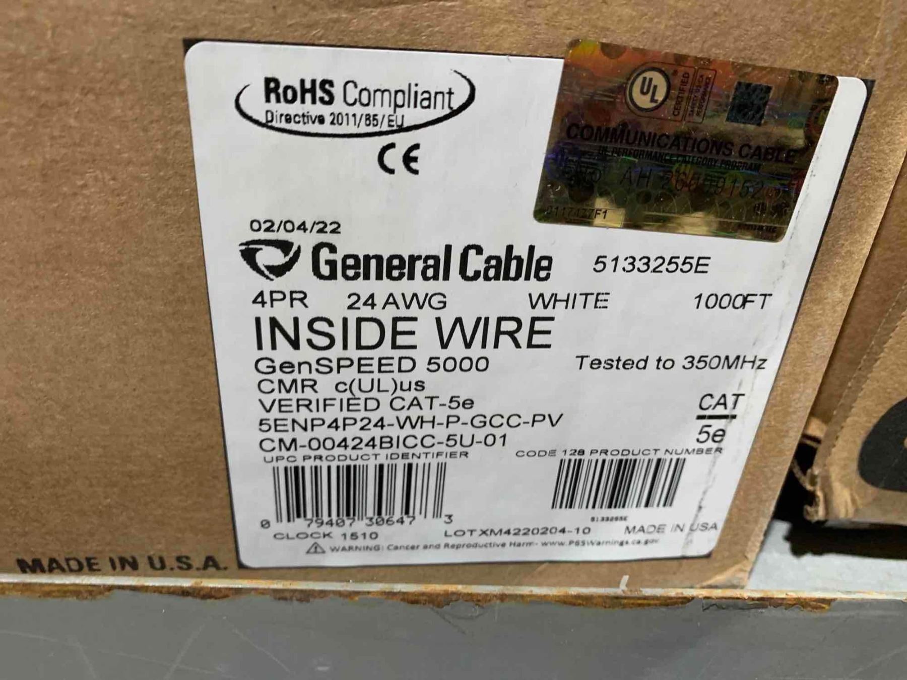 General Cable Cat 5e Riser - White 1000 '