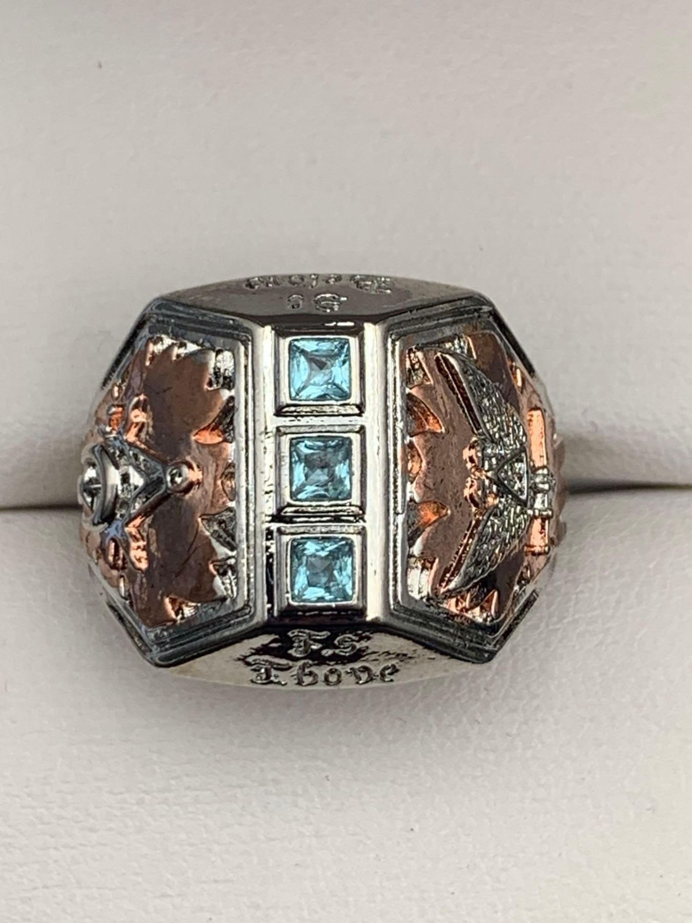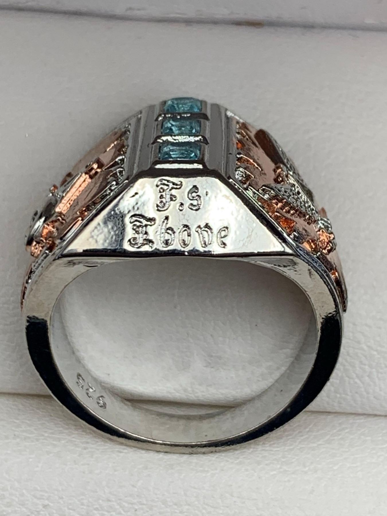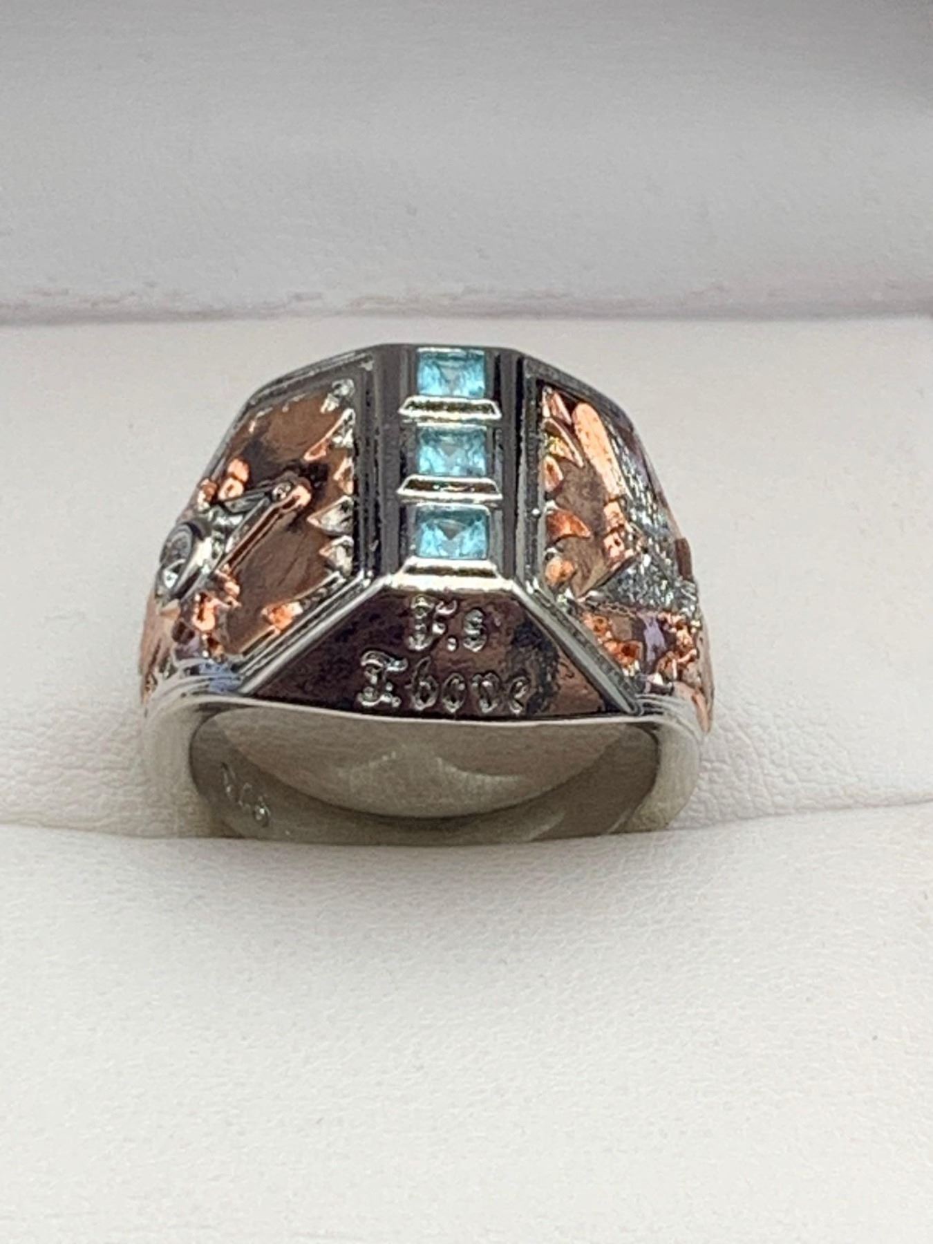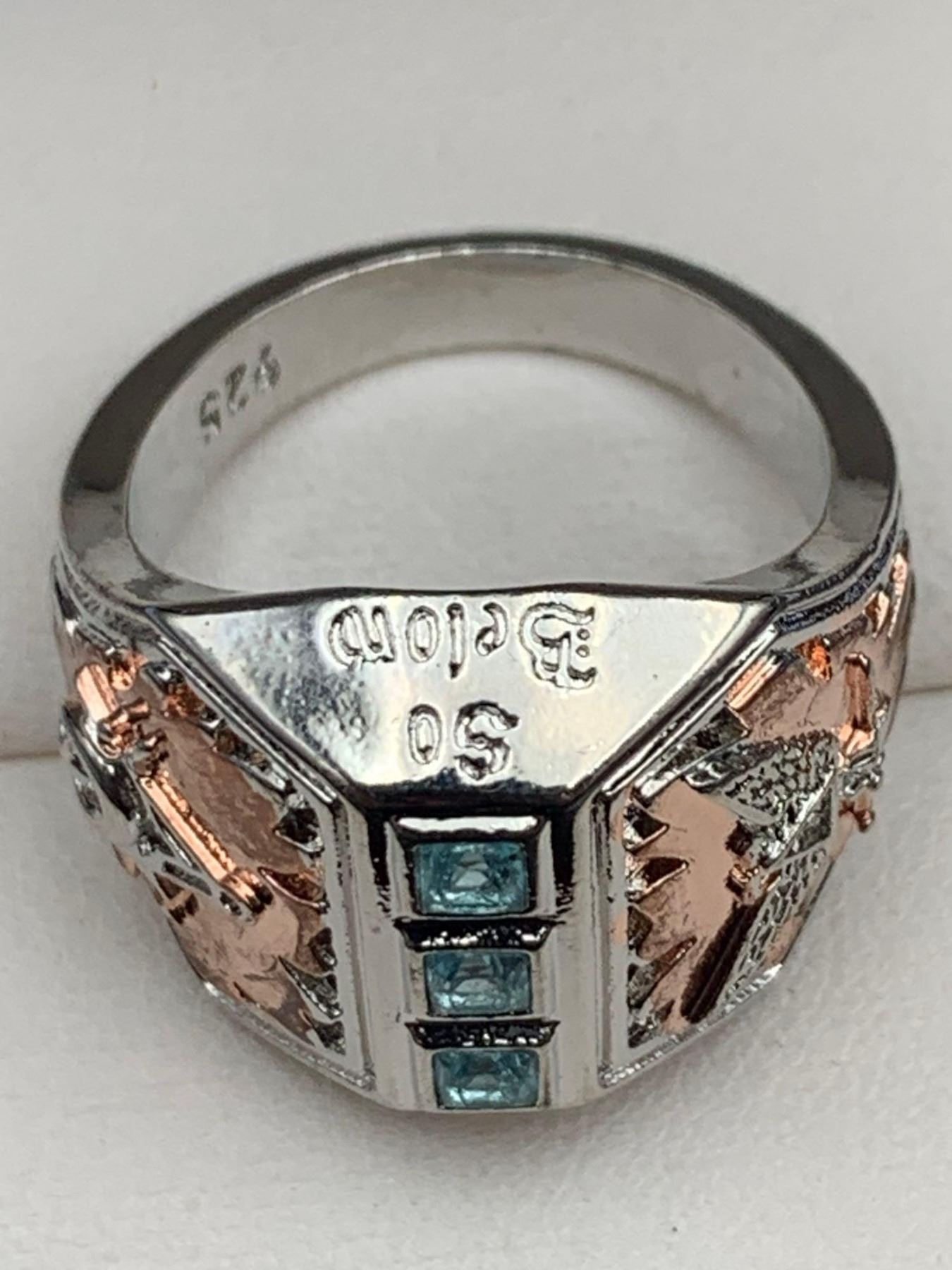 Gents .925 Silver Aqua Topaz Copper Inset dress ring