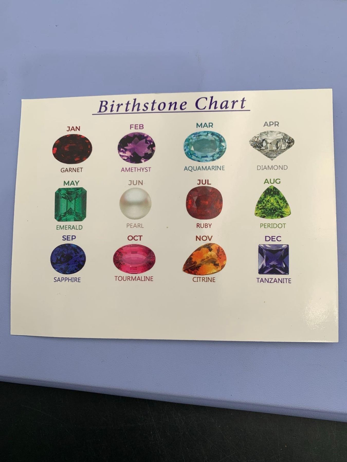 Genuine Birthstones and the year Month Chart