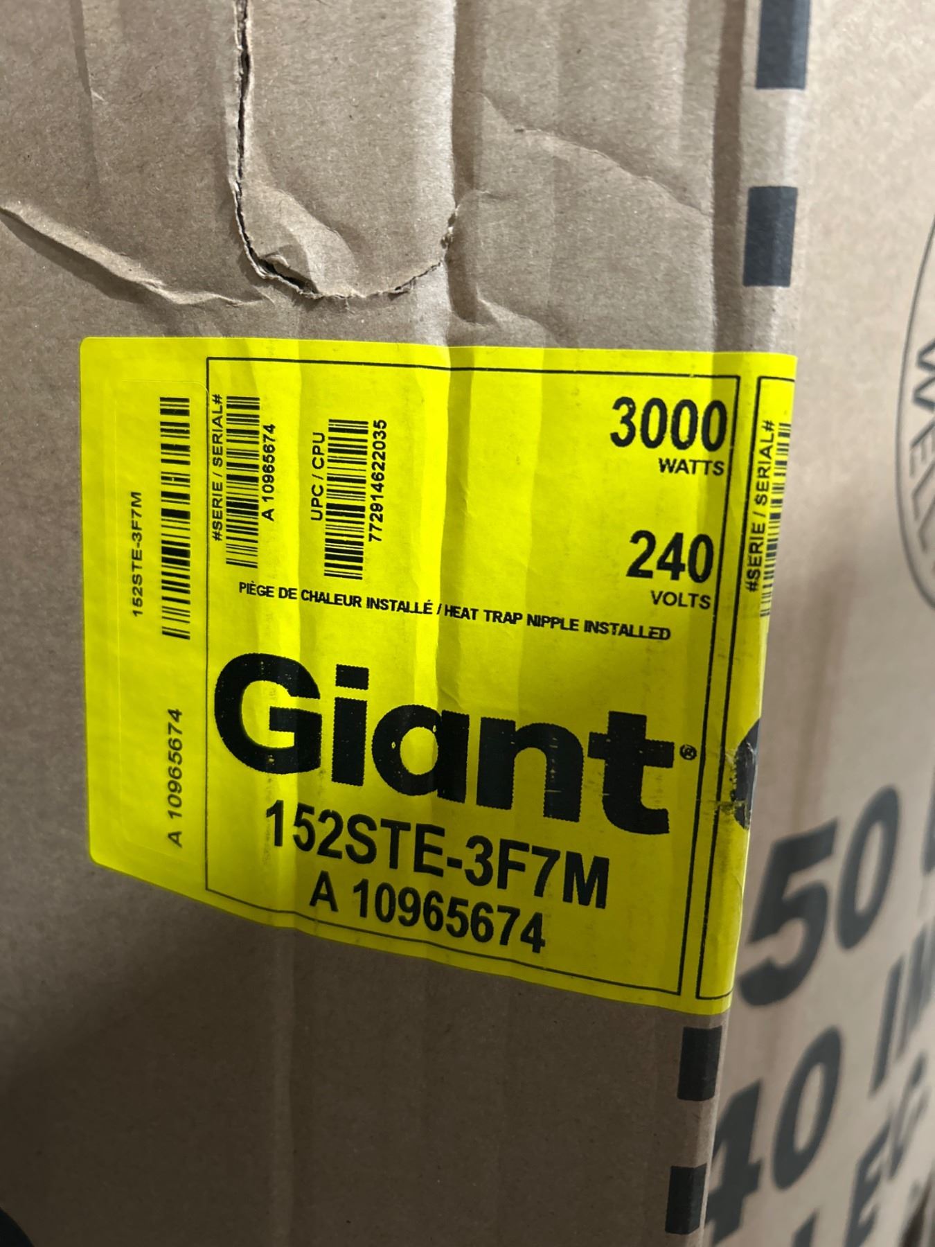 Giant 152STE-3F7M 50 US Gallon Electric Water Heater 3000W 240V