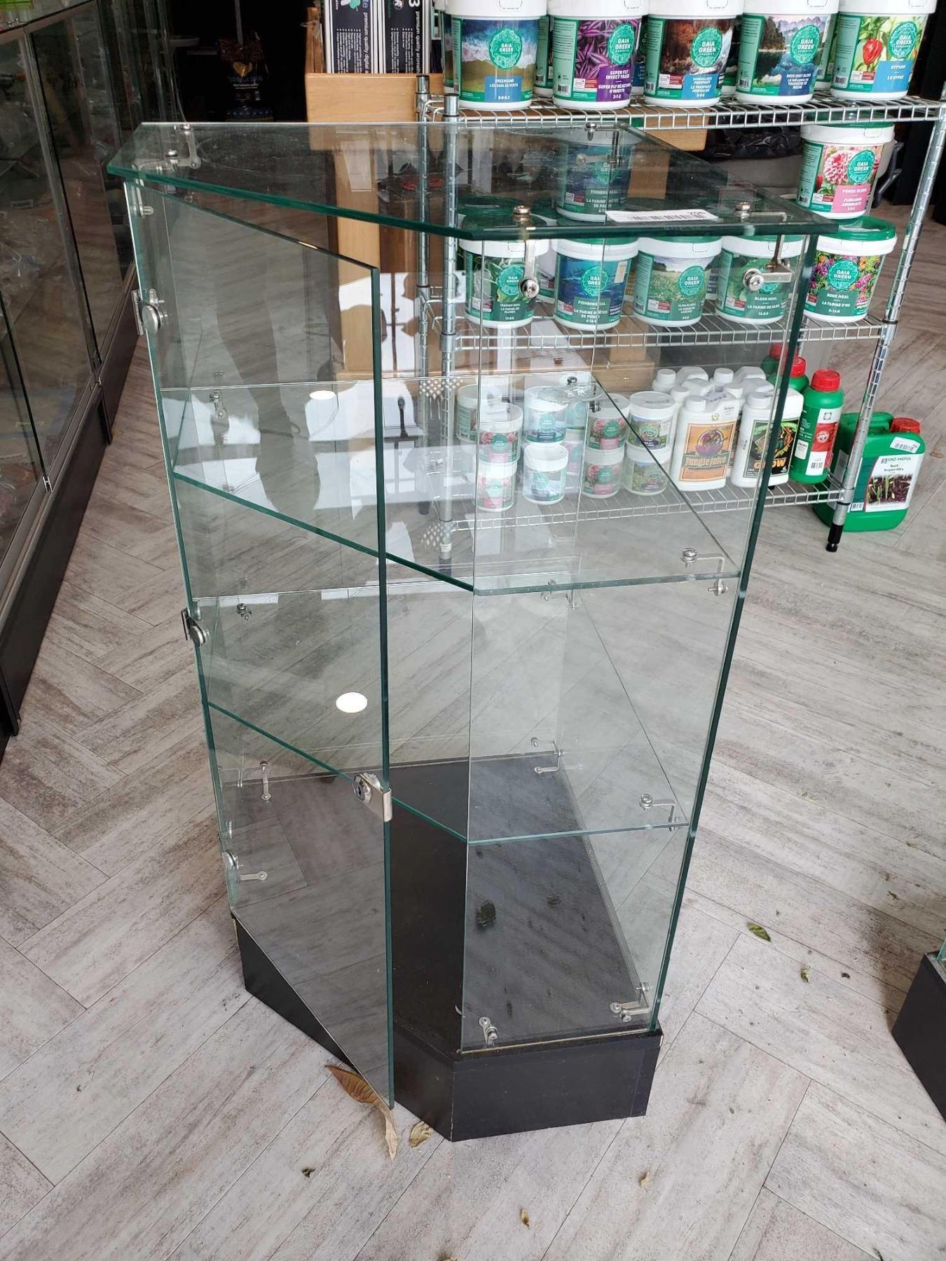 Glass Corner Mountable display case with door, lockable -