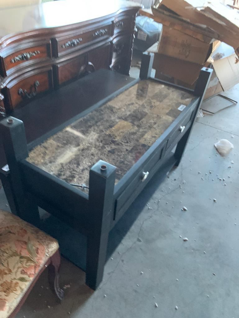 Glass Top & Faux Marble double drawer sofa table ( glass not shown)