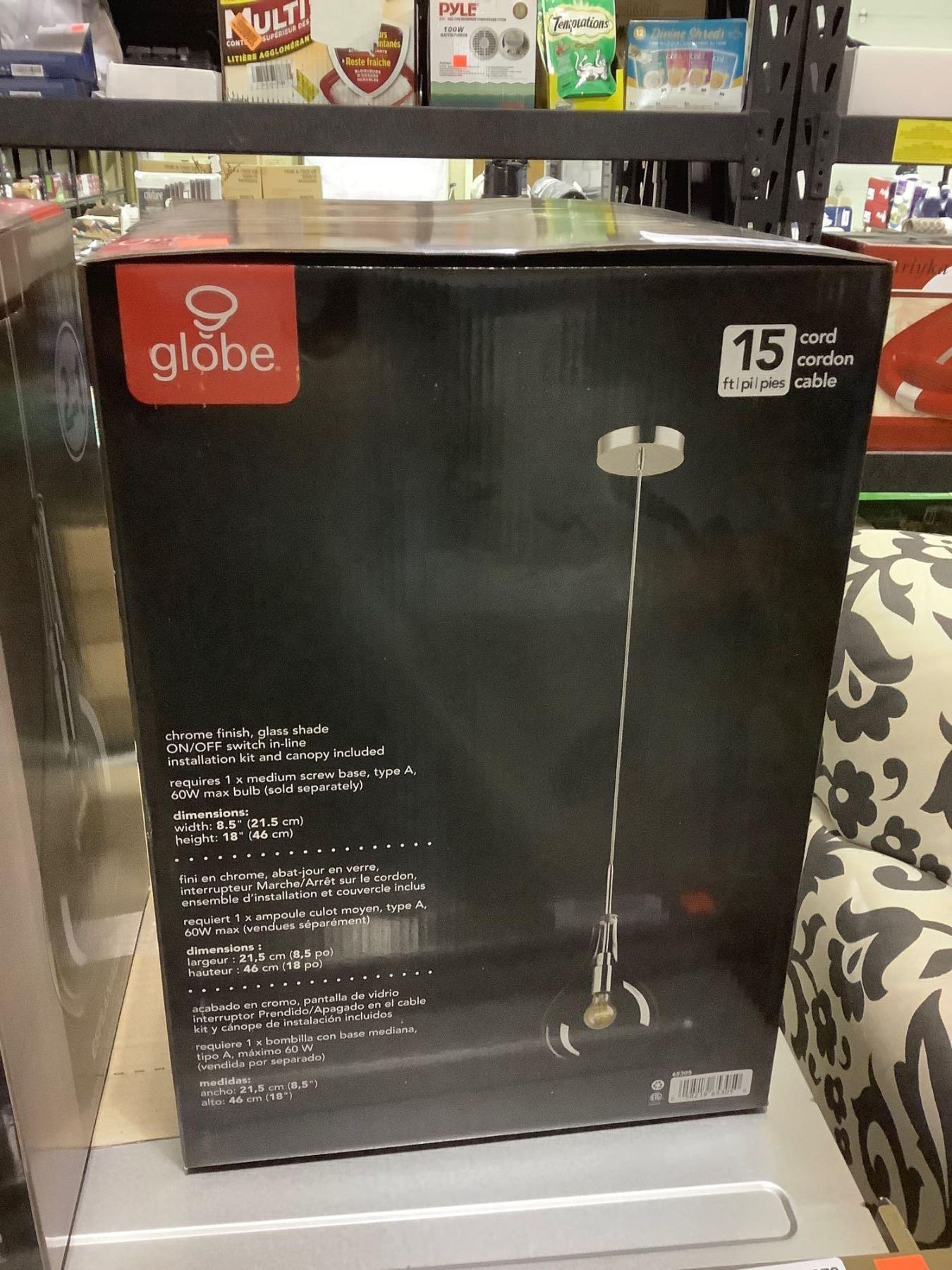 Globe Esplanade Plug In Pendant (8.5in W x 18in H)
