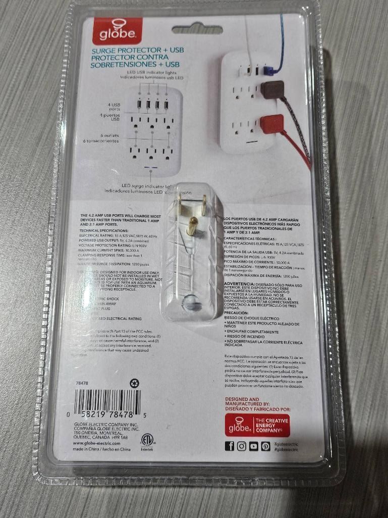 Globe Surge Protector with USB Ports and 6 Outlets