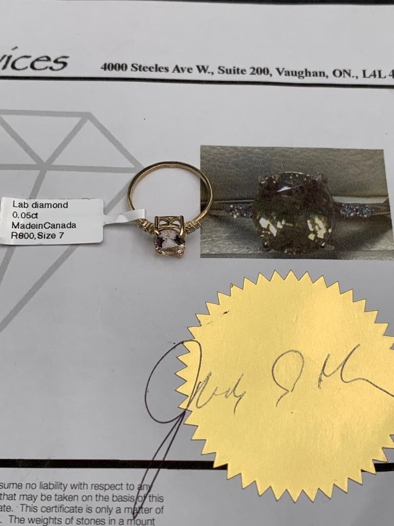 Gold Ring With Lab Diamond 0.05ct, Size 7, Made in Canada Appraised $1300
