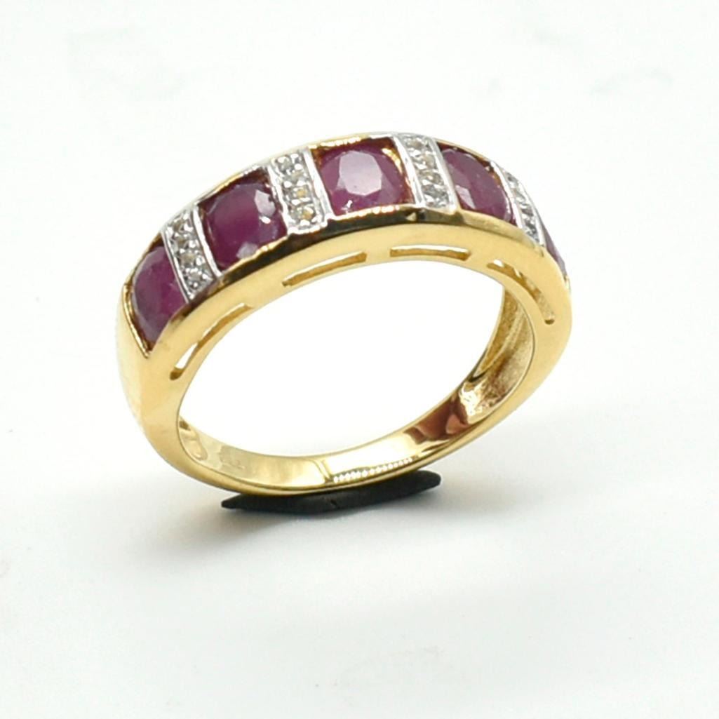 Gold plated Silver Ruby White Topaz(1.8ct) Gold Rhodium Plated Ring (~weight 3.45g)