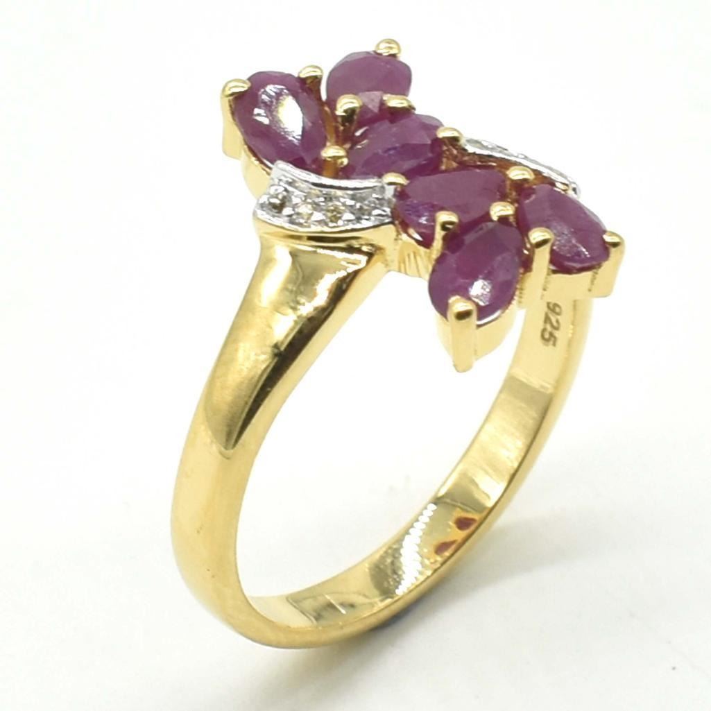 Gold plated Silver Ruby White Topaz(1.8ct) Gold Rhodium Plated Ring (~weight 3.75g)