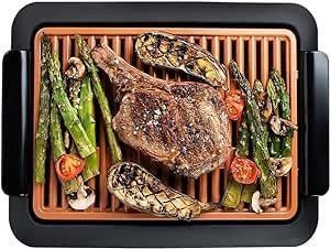 Gotham Steel Smokeless Indoor Grill, Nonstick Indoor Smokeless Grill with Ceramic Coating & Adjustable Heating, Indoor Grill Electric Smokeless with Dishwasher Safe Removable Grill Plate, Toxin Free