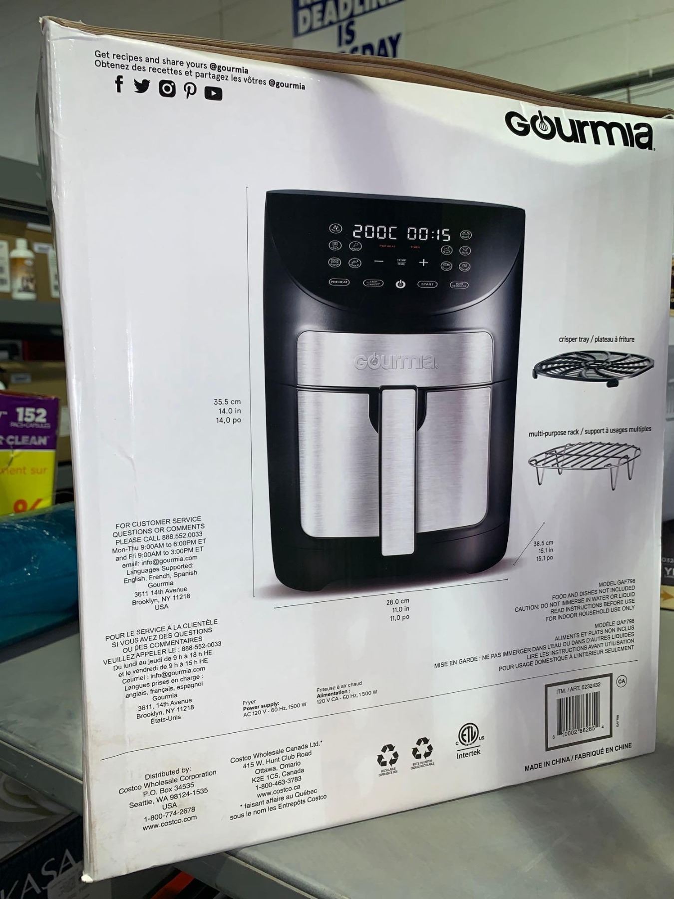 Gourmia 6.7L/ 7 Qt  Digital Air Fryer with 10 cooking functions