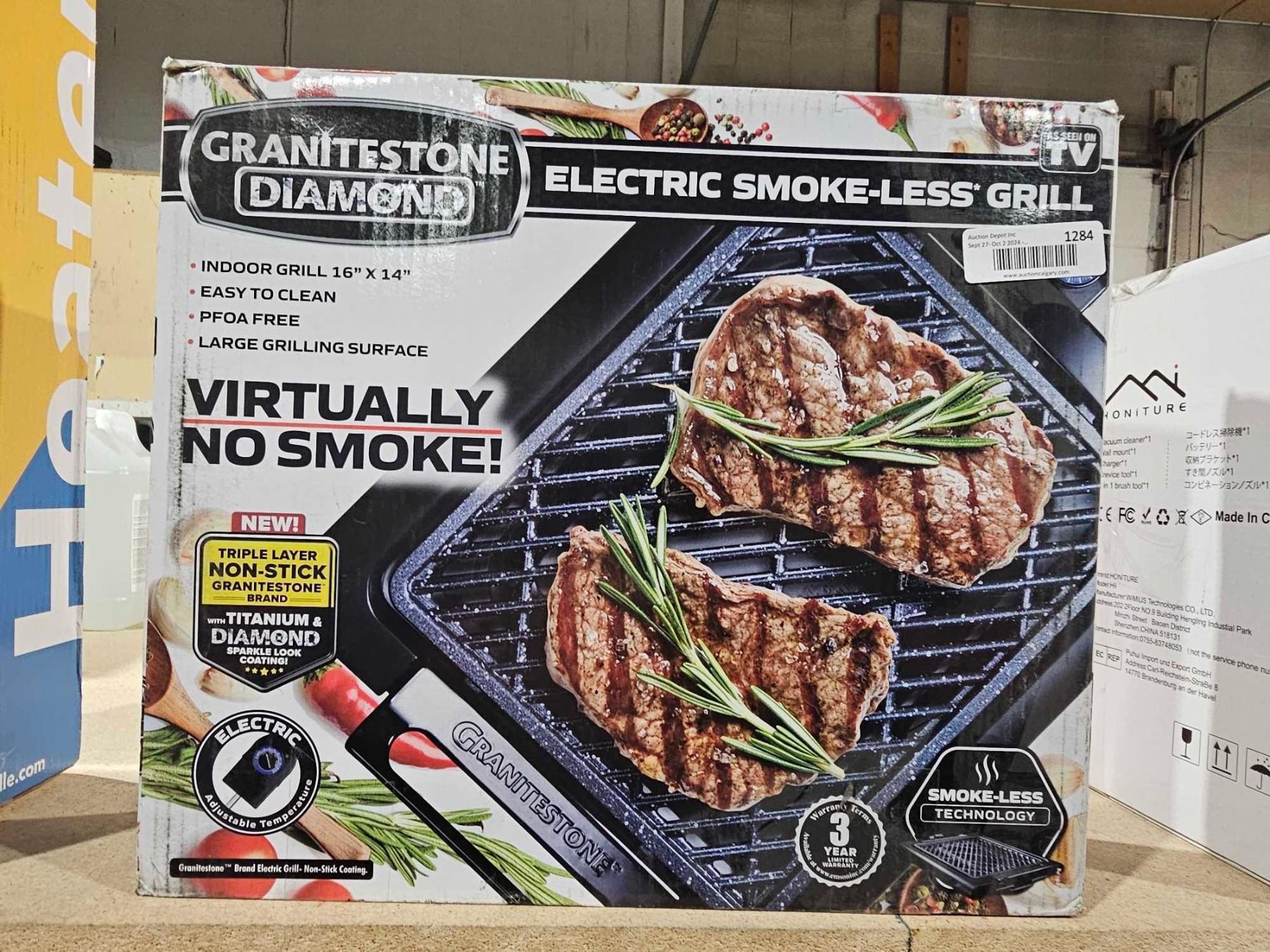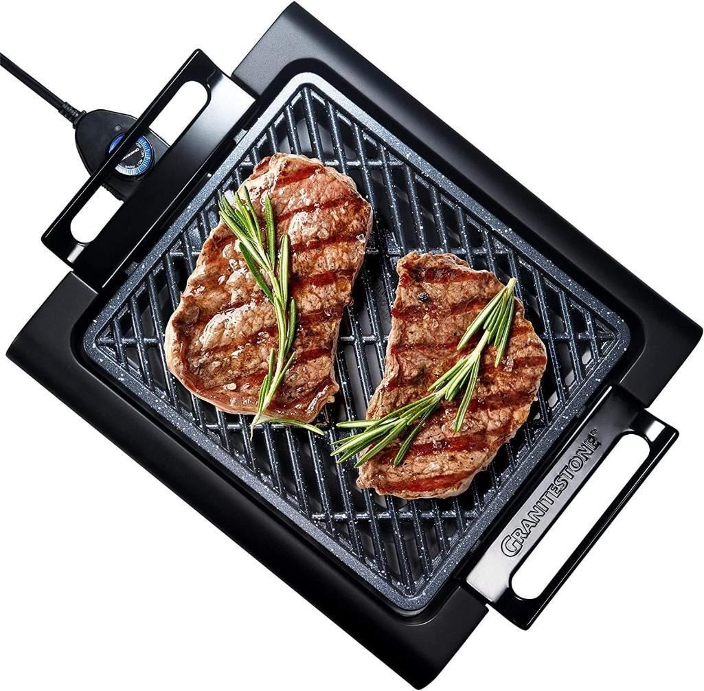 Granitestone Smokeless Indoor Grill, Nonstick Indoor Smokeless Grill with Diamond Coating & Adjustable Heating, Indoor Grill Electric Smokeless with Dishwasher Safe Removable Grill Plate, Toxin Free