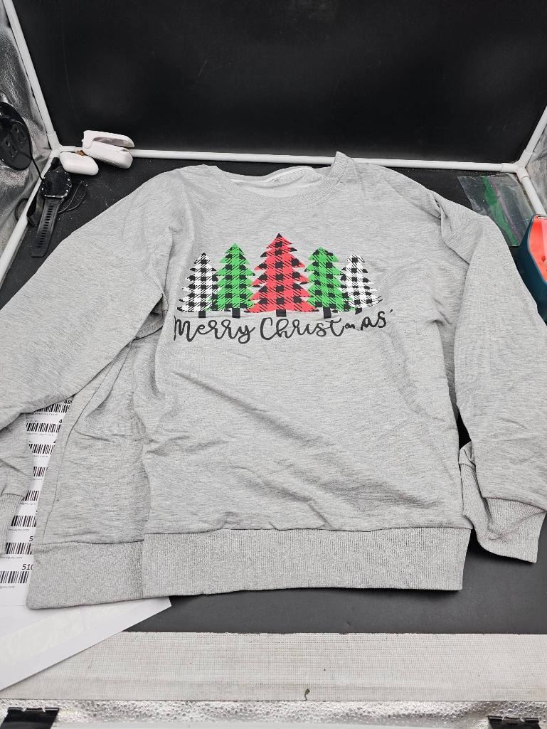 Gray 2XL Holiday-Themed Sweatshirt with Tree Design