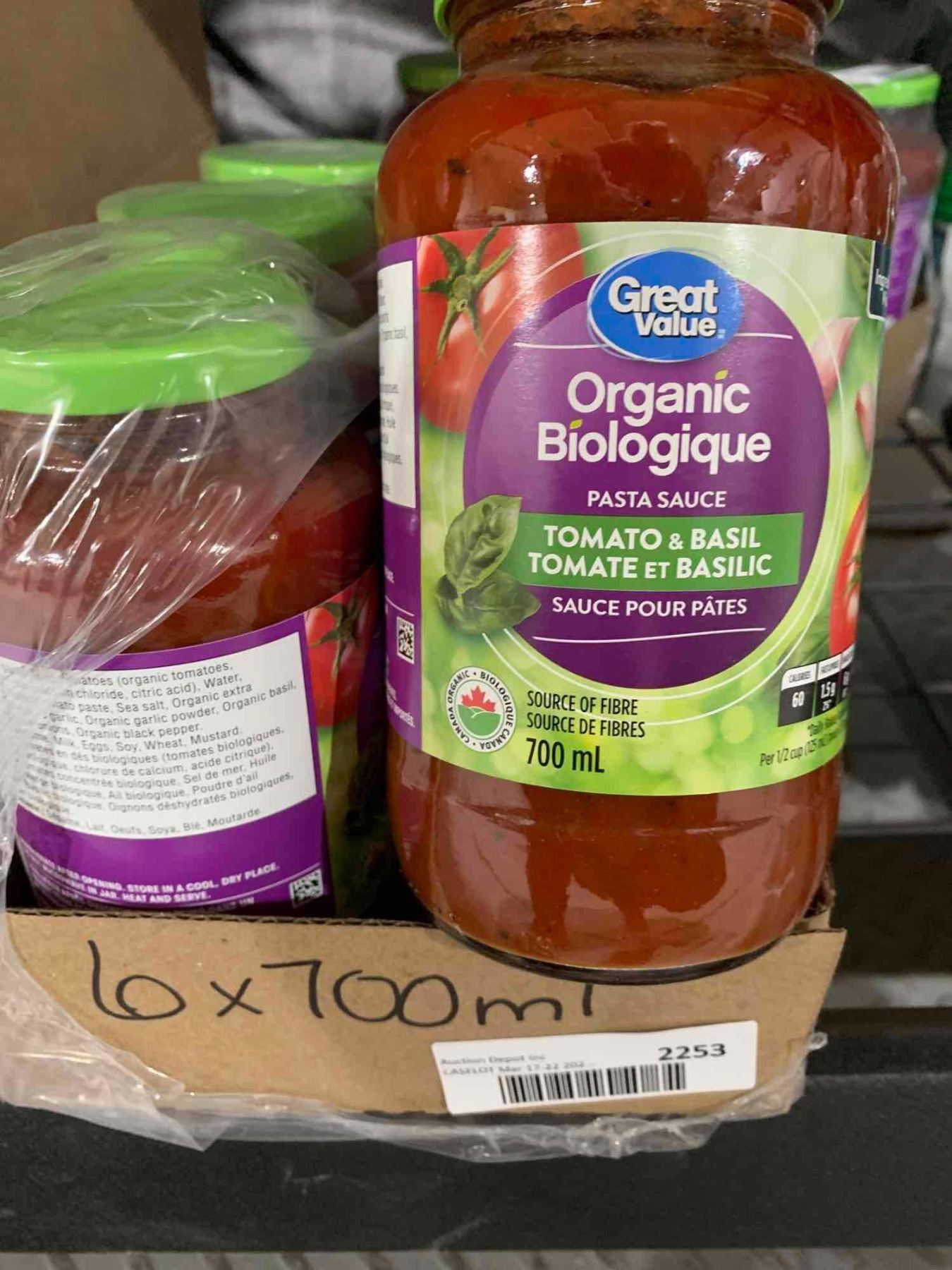 Great Value Organic Tomato & Basil pasta Sauce 6 x 700ml