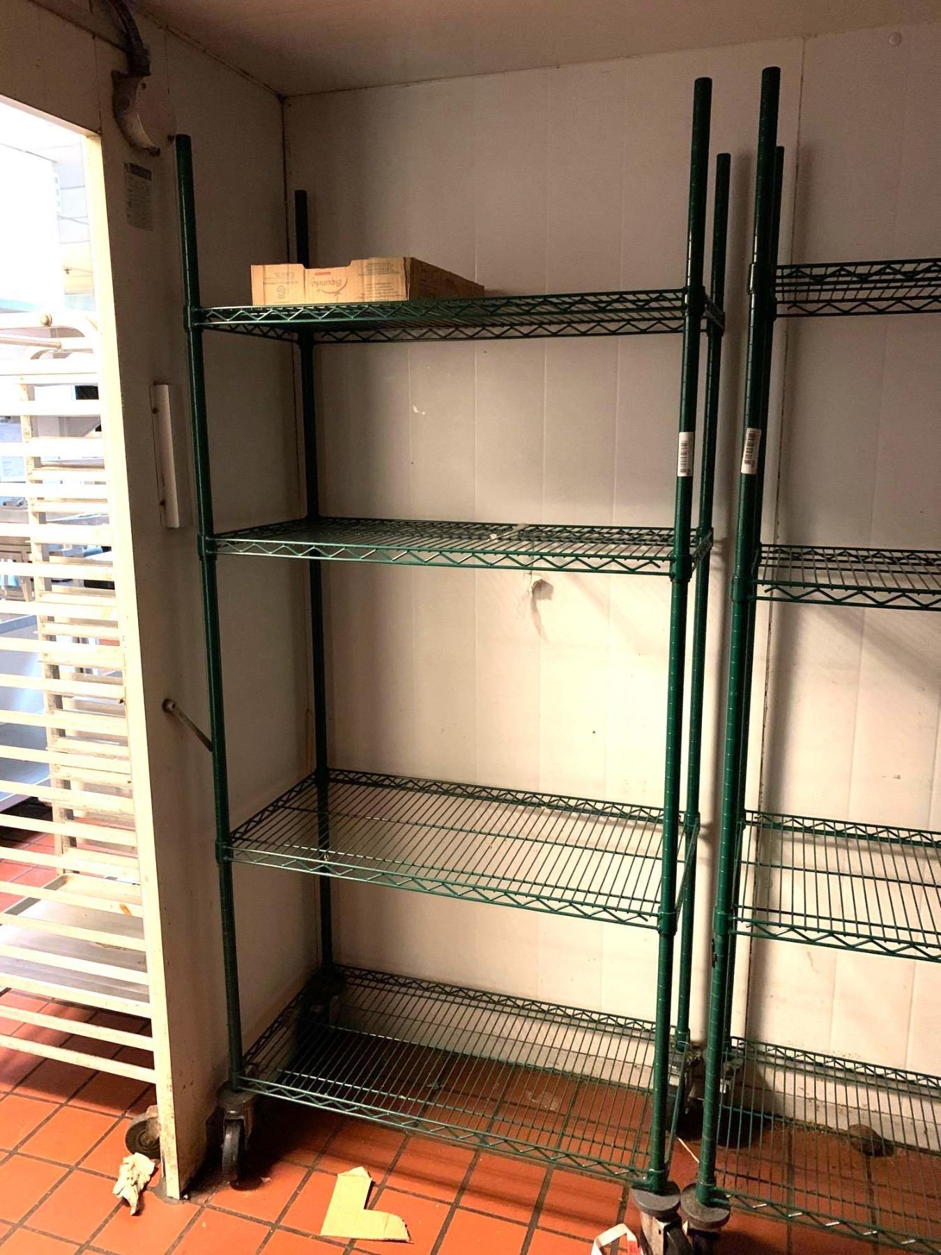 Green Metro rack narrow on wheels 4 shelf