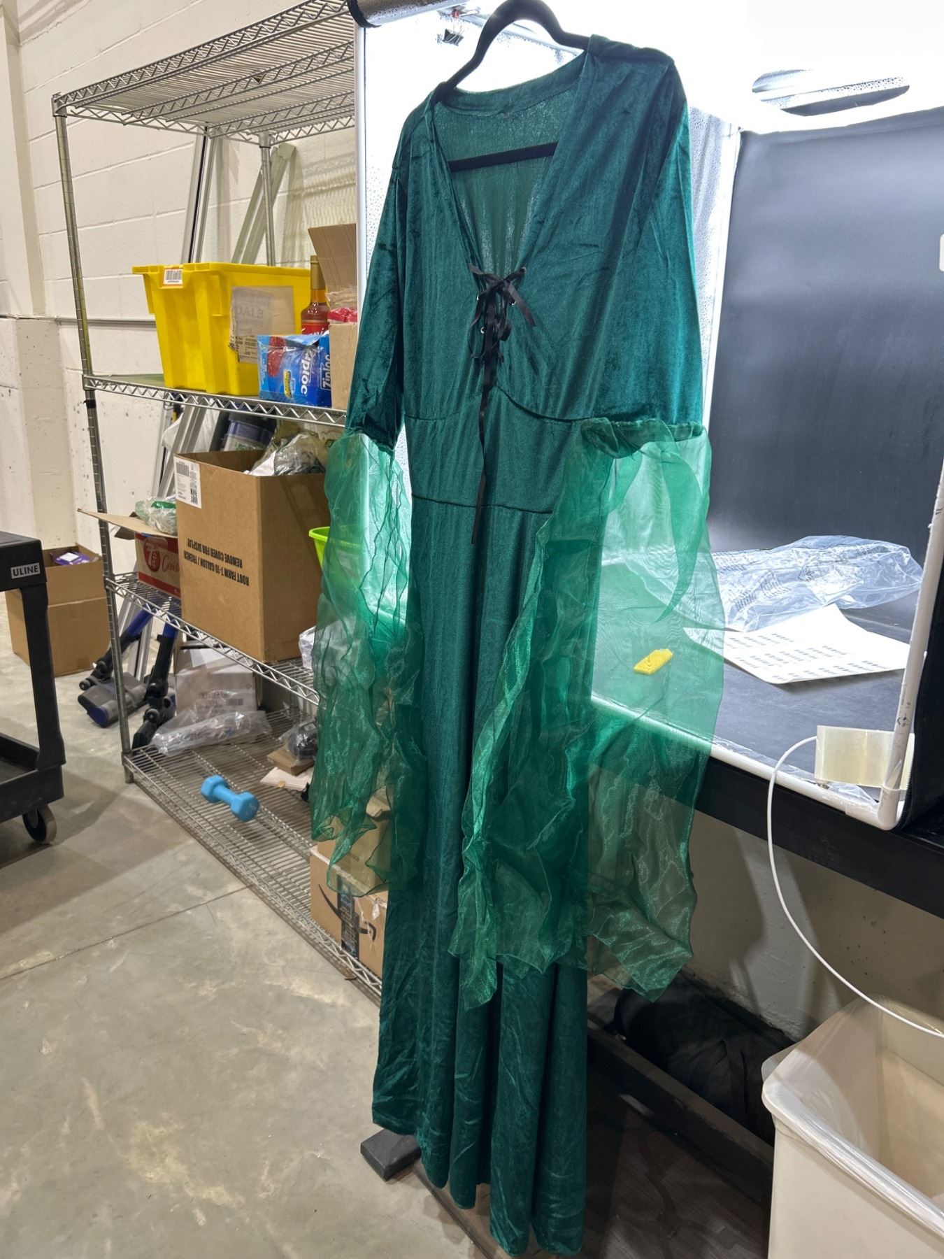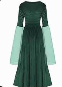 Green Midevil / Witch Velvet Dress with Tulle Sleeves, Size XL