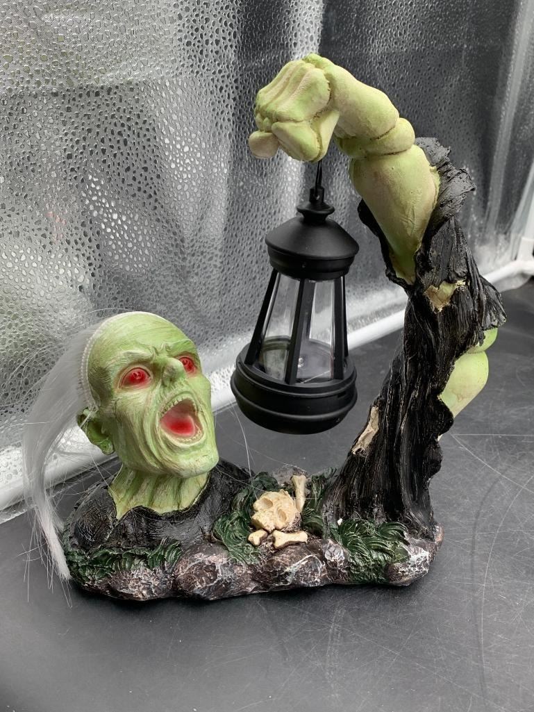 Green Skeleton Halloween Decoration With Lantern for Garden Use