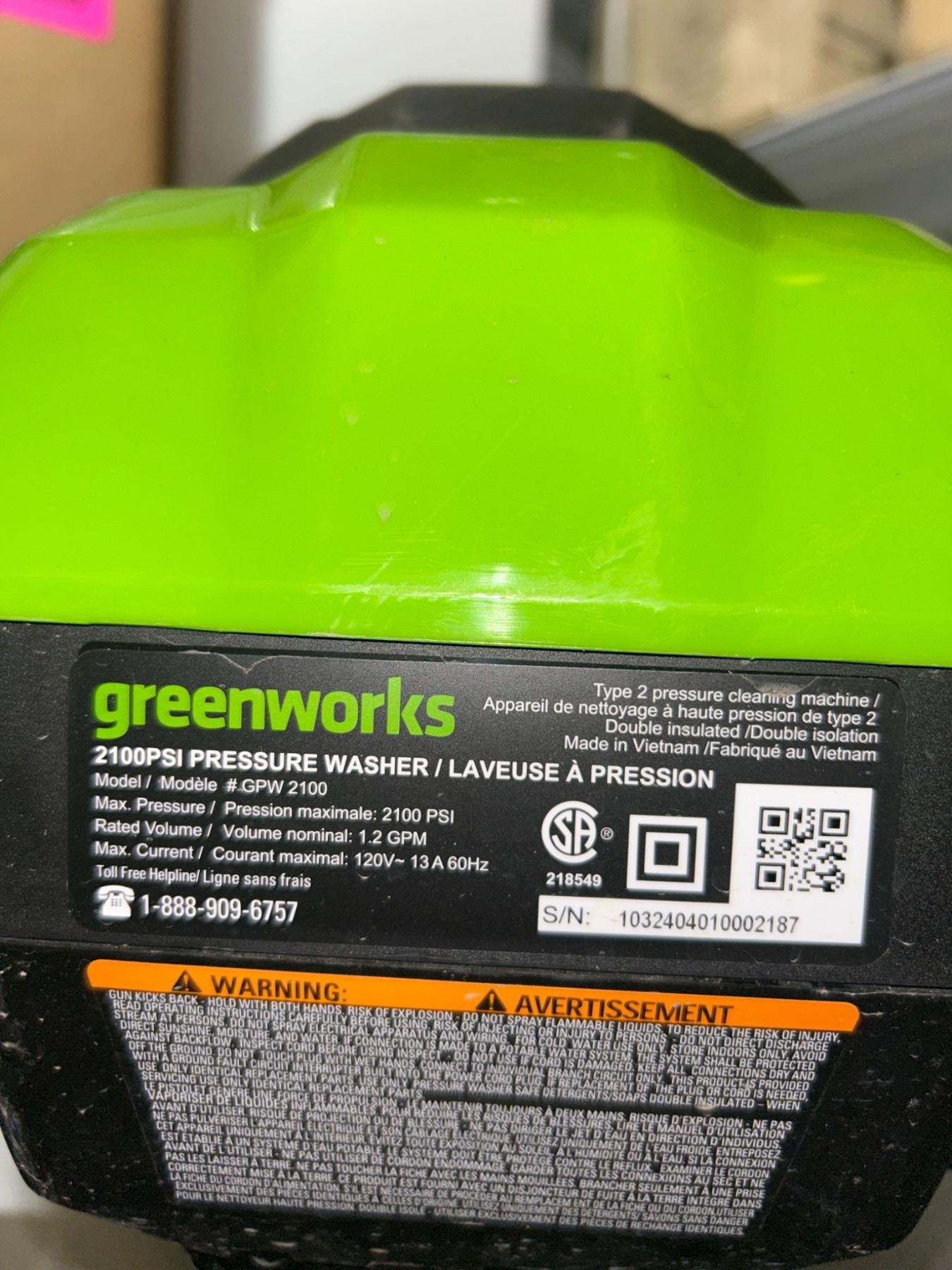 Greenworks 2100 PSI Pressure Washer, 120V Electric