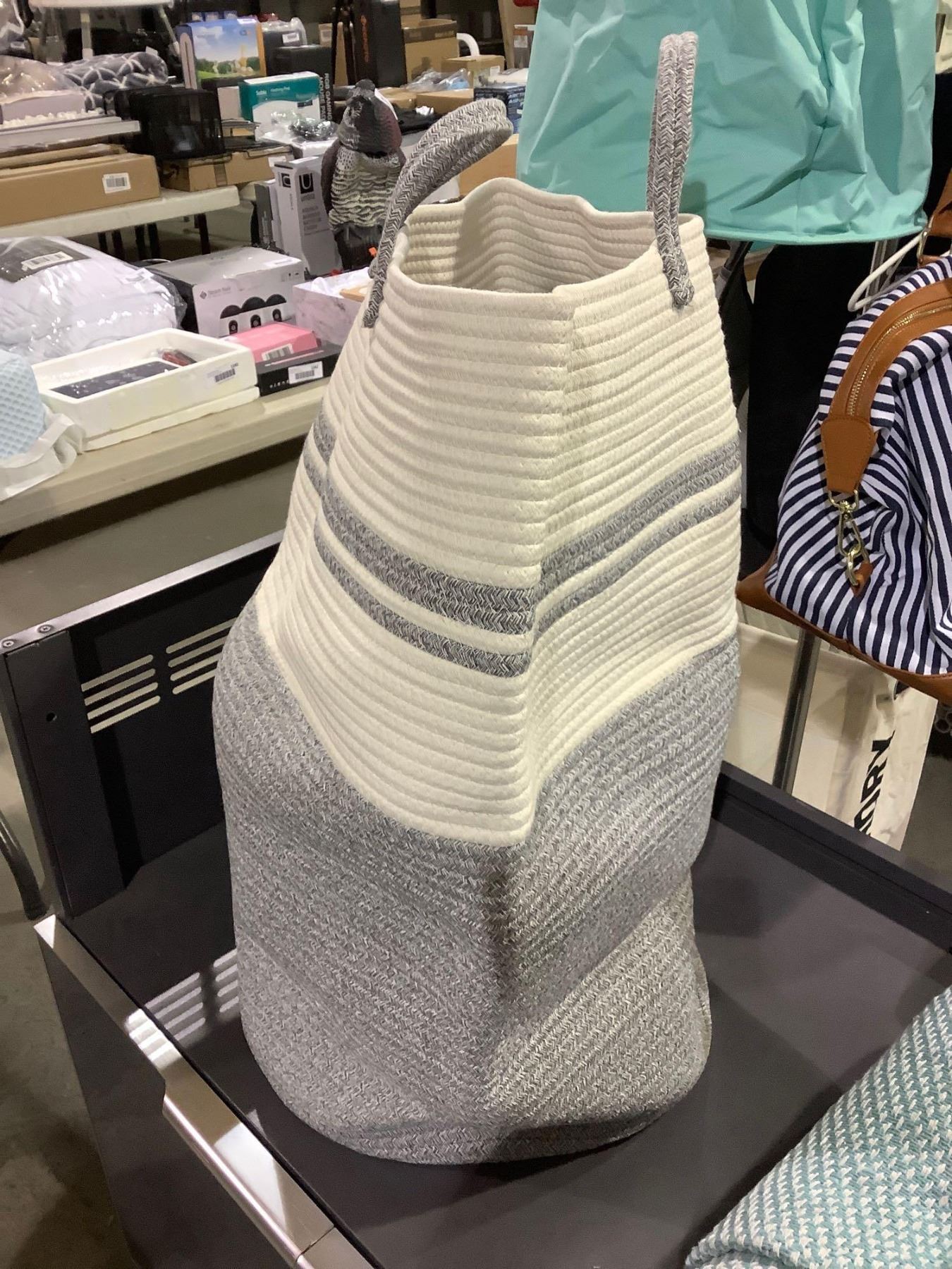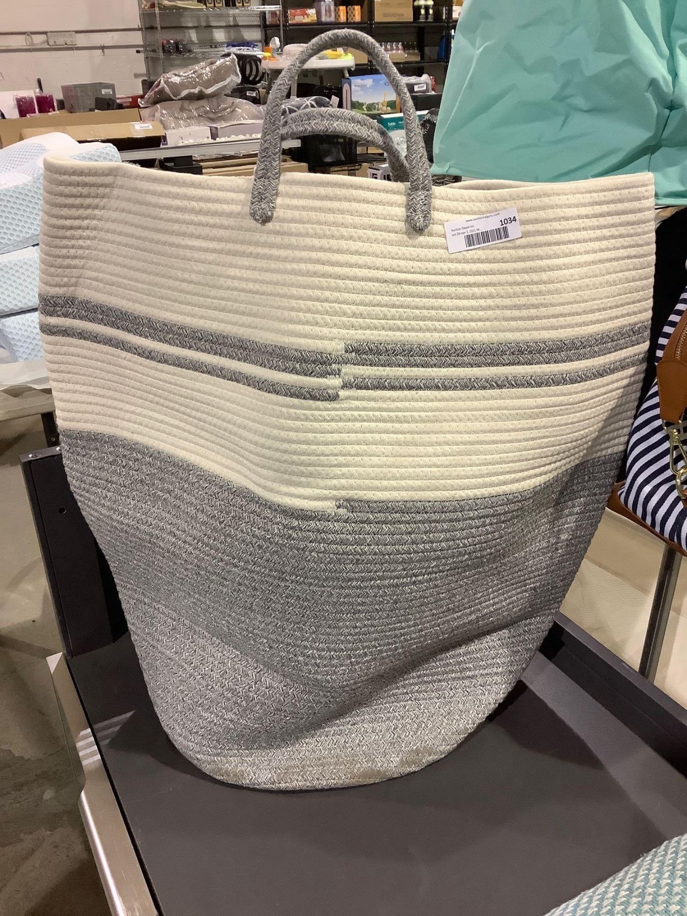 Grey & Beige Woven Laundry Bag with Handles